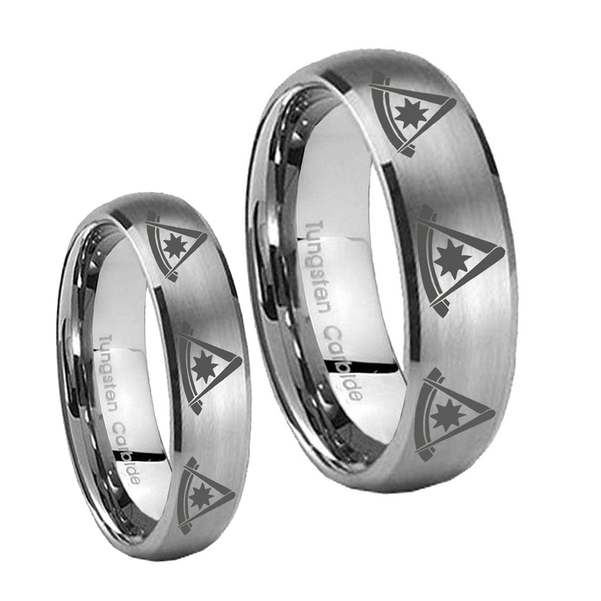 His Hers Multiple Pester Master Masonic Dome Brushed Tungsten Mens Ring Set