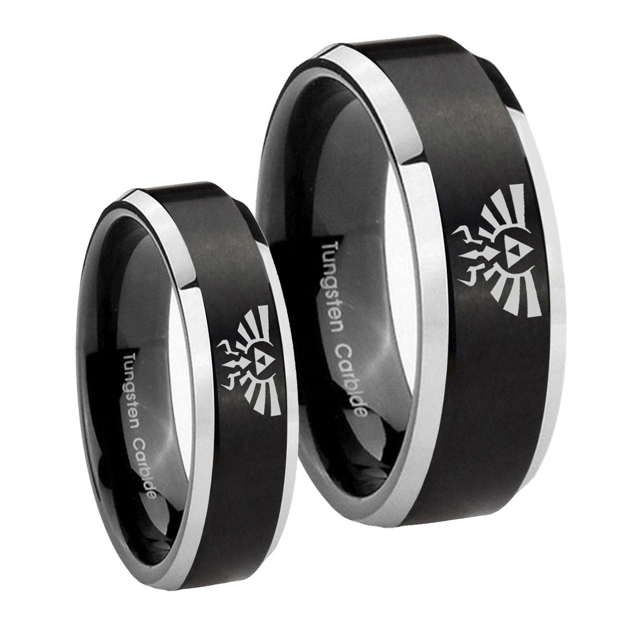 His Hers Zelda Skyward Sword Beveled Brush Black 2 Tone Tungsten Men's Ring Set