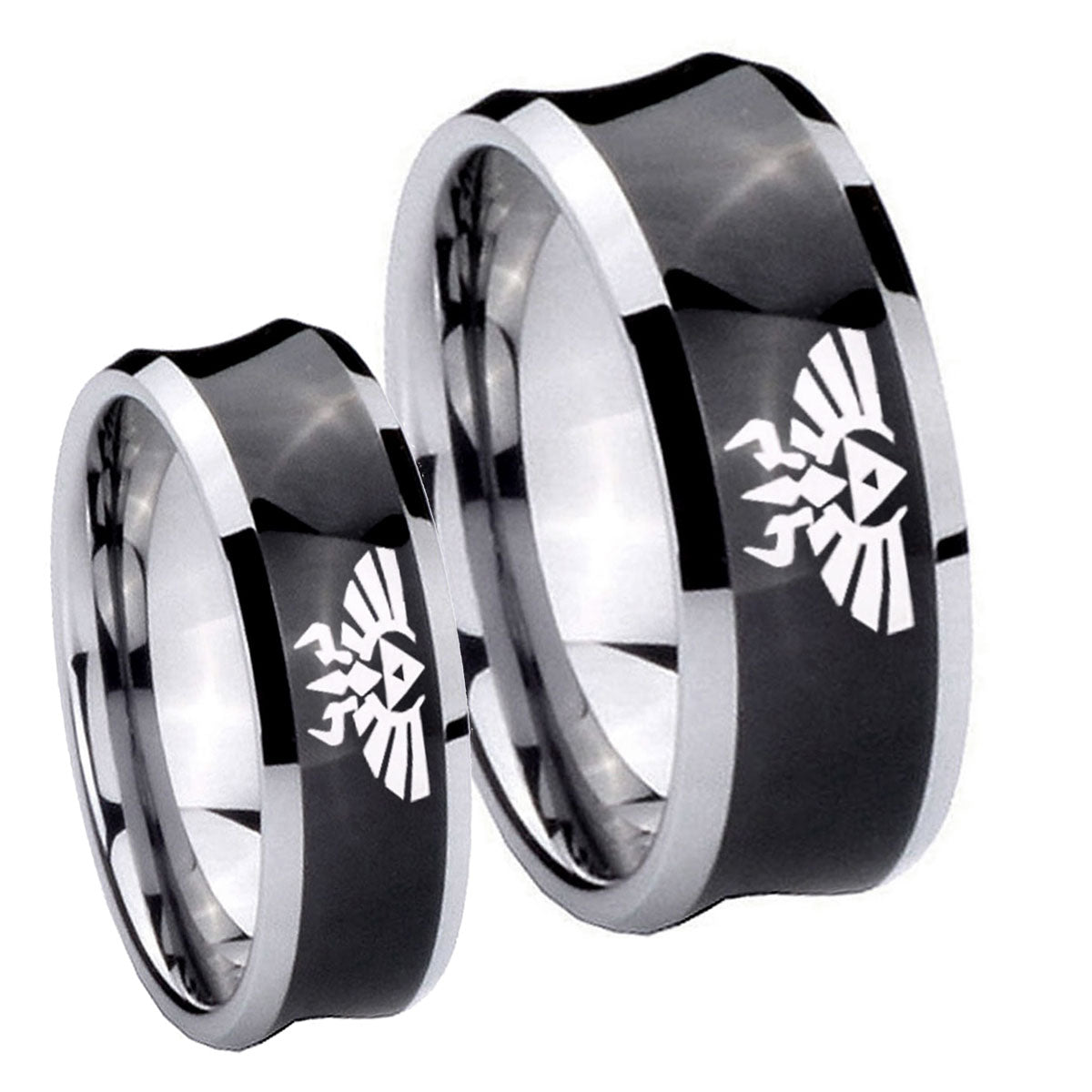His Hers Zelda Skyward Sword Concave Black Tungsten Mens Anniversary Ring Set