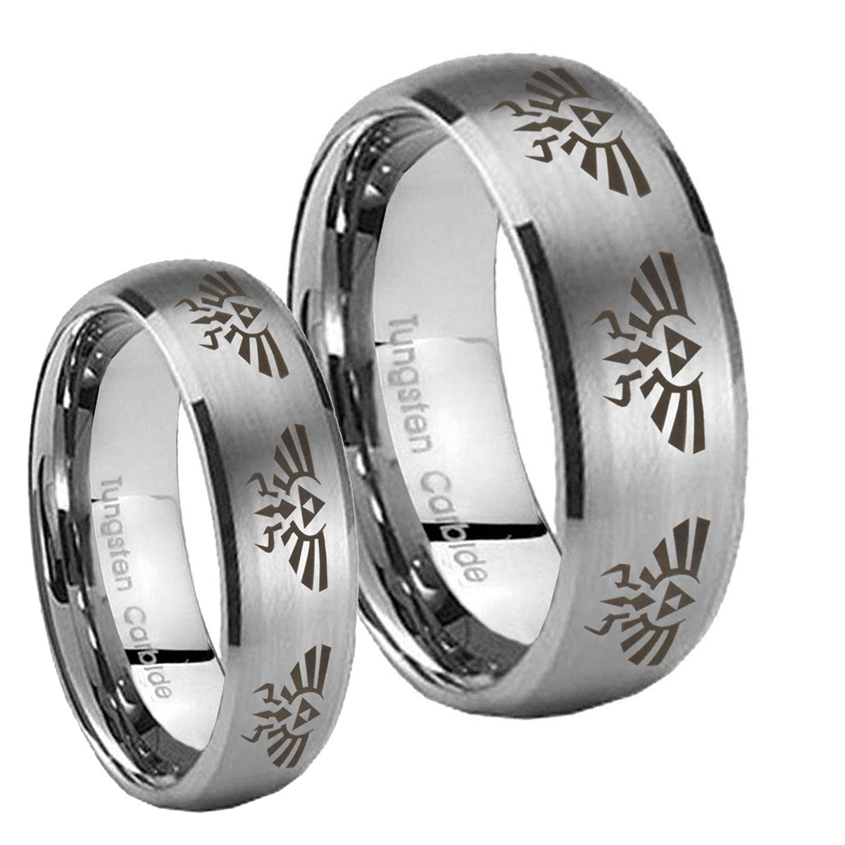 His Hers Multiple Zelda Skyward Sword Dome Brushed Tungsten Rings for Men Set
