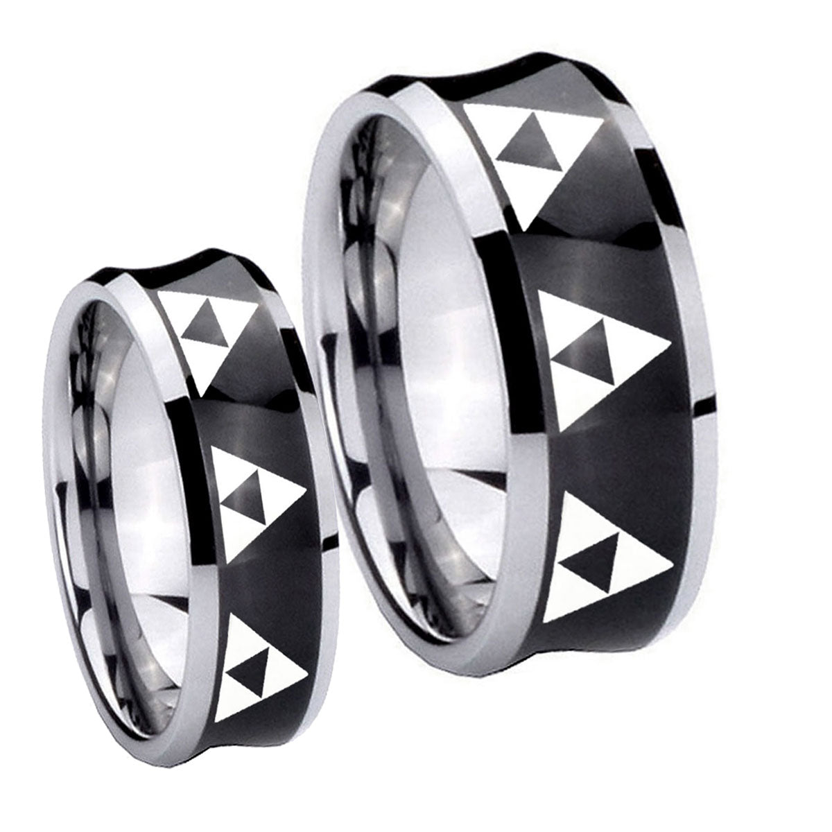 His Hers Multiple Zelda Triforce Concave Black Tungsten Men's Bands Ring Set