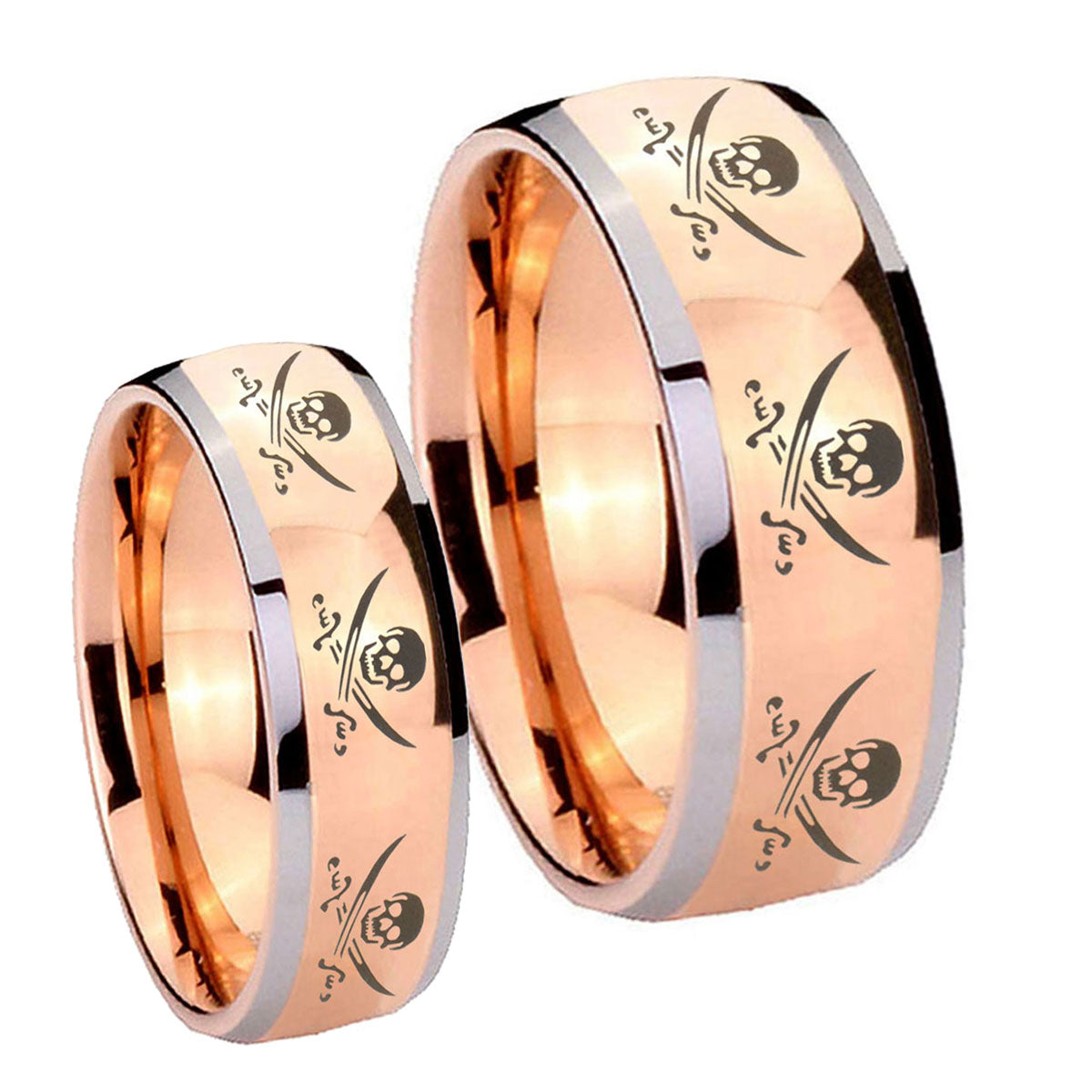 His Hers Multiple Skull Pirate Dome Rose Gold Tungsten Men's Engagement Band Set