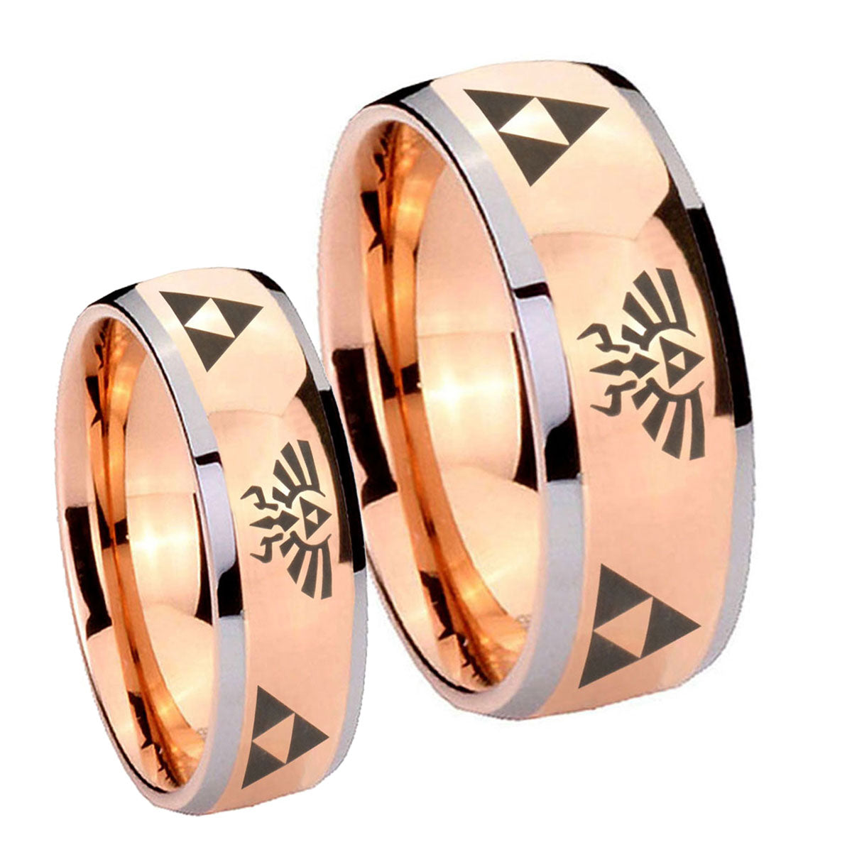 Bride and Groom Legend of Zelda Dome Rose Gold Tungsten Mens Promise Ring Set