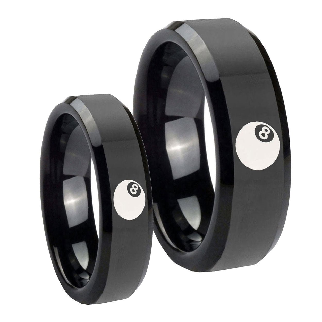 Bride and Groom 8 Ball Beveled Edges Black Tungsten Rings for Men Set