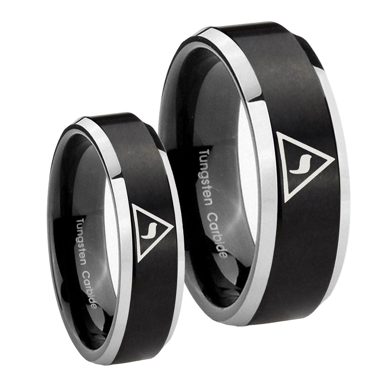 His Hers Masonic Yod Beveled Brush Black 2 Tone Tungsten Mens Ring Set