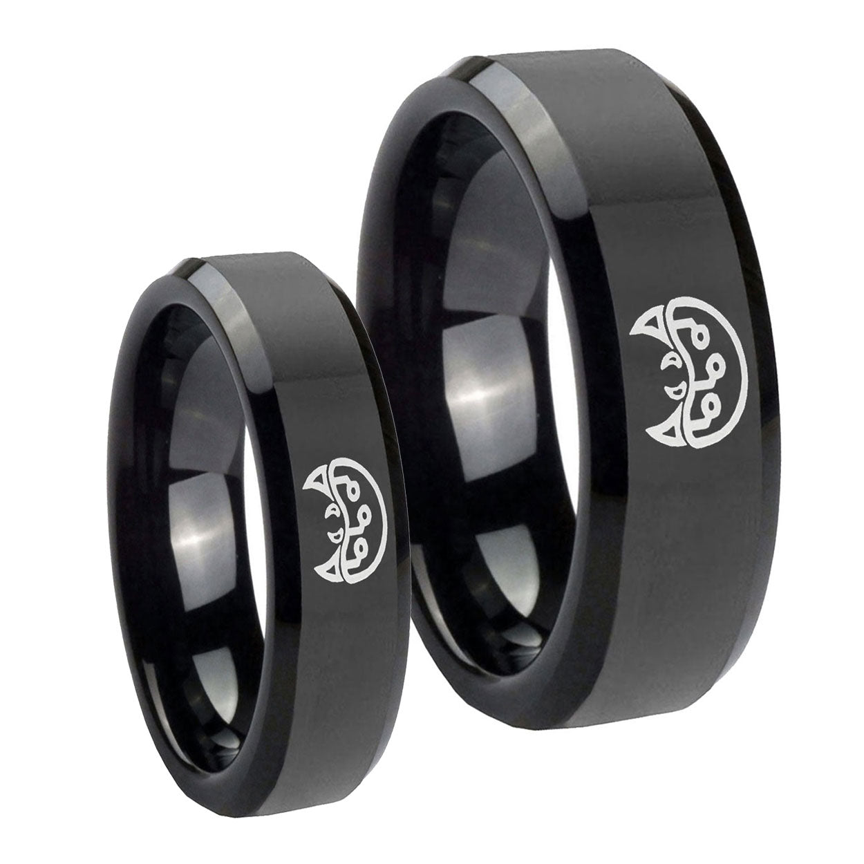 His and Hers Metroid Beveled Edges Black Tungsten Men's Band Ring Set