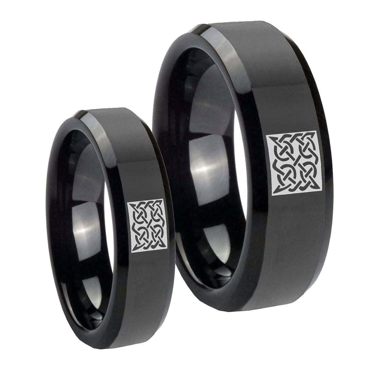 His Hers Celtic Design Beveled Edges Black Tungsten Wedding Band Ring Set