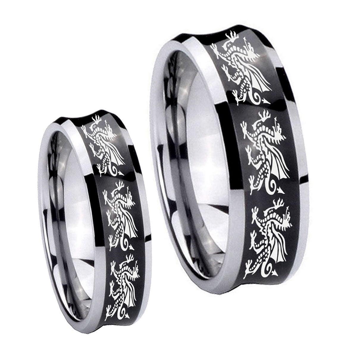 Bride and Groom Multiple Dragon Concave Black Tungsten Men's Bands Ring Set