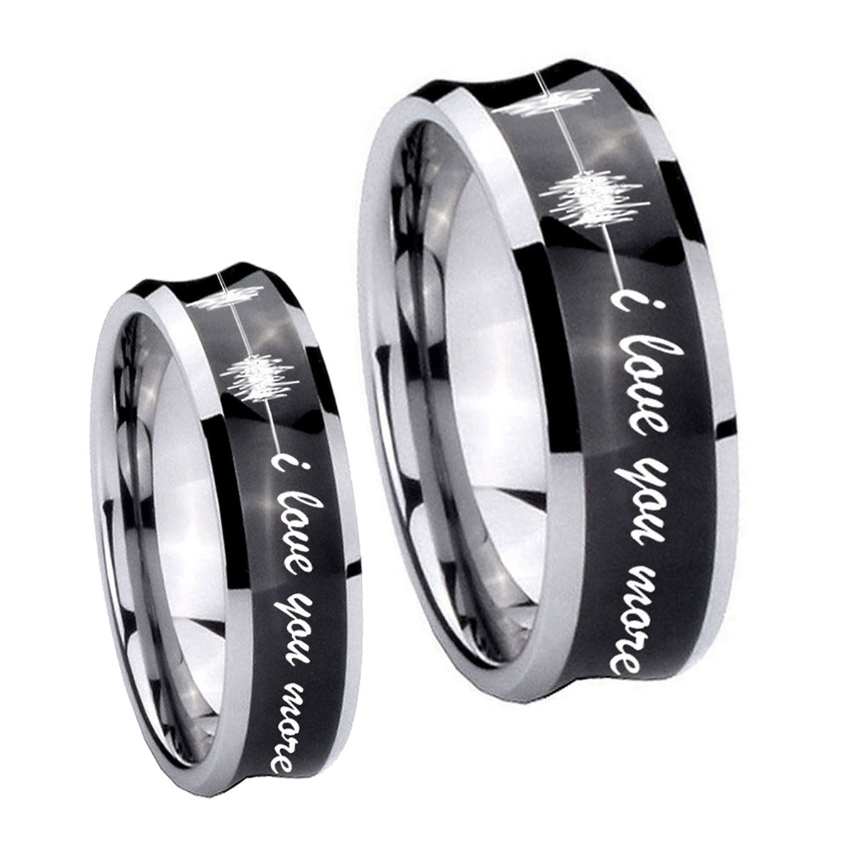 His Hers Sound Wave, I love you more Concave Black Tungsten Mens Ring Set