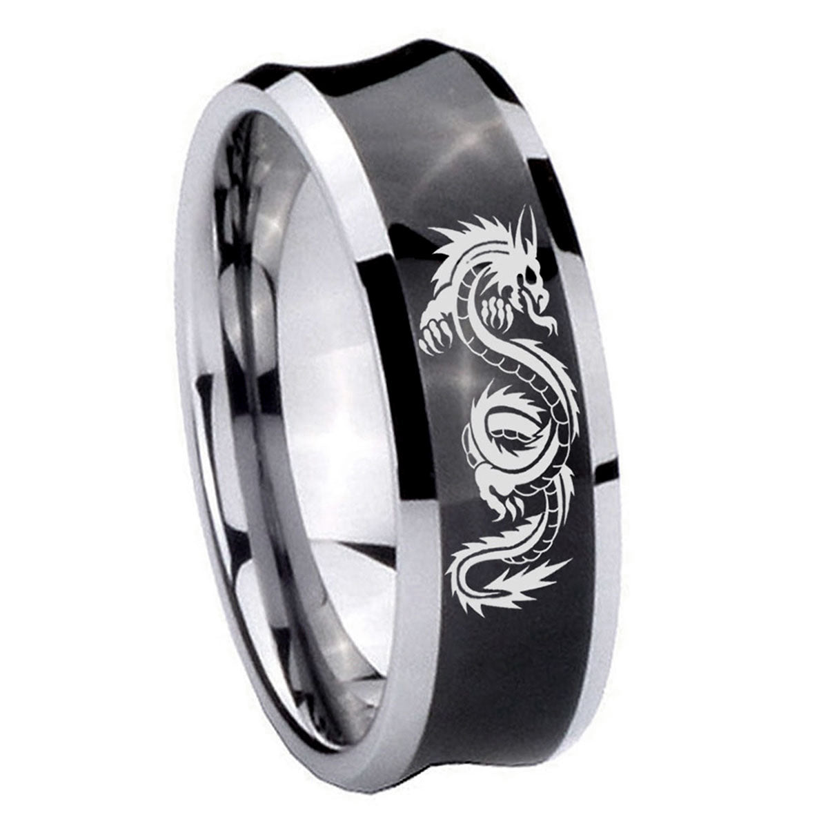 Bride and Groom Dragon Concave Black Tungsten Carbide Wedding Band Ring Set