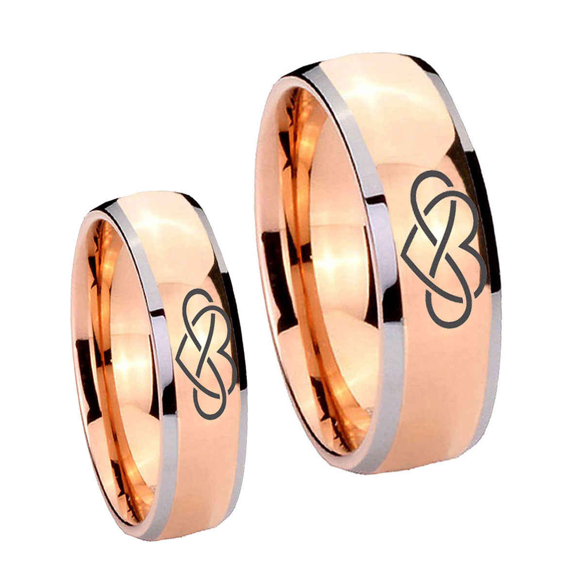 Bride and Groom Infinity Love Dome Rose Gold Tungsten Mens Promise Ring Set