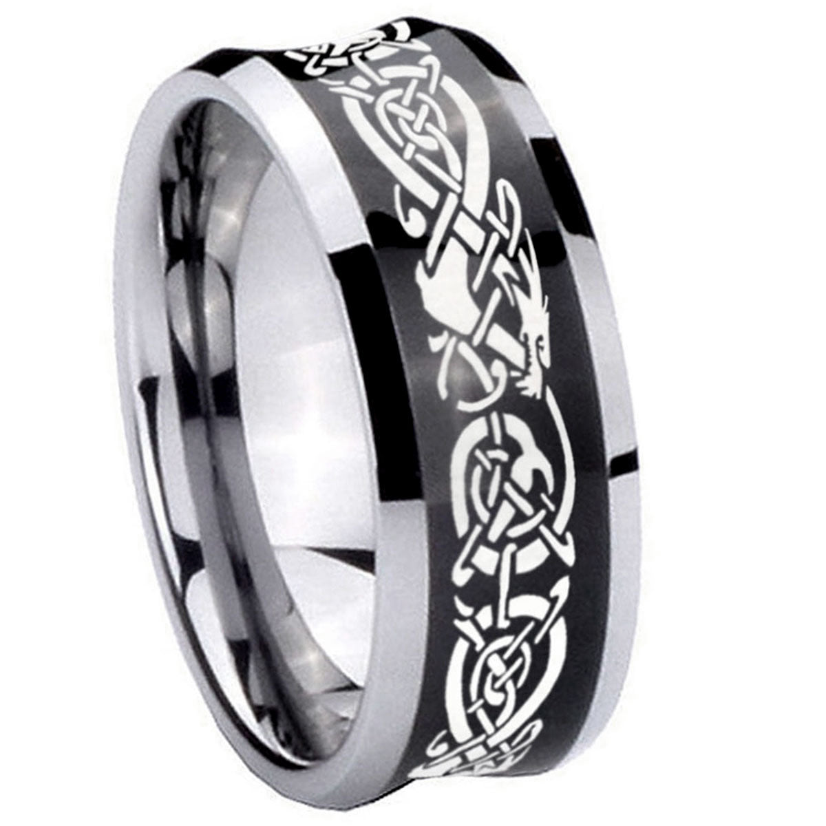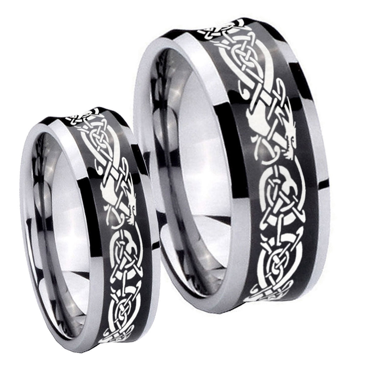 His and Hers Celtic Knot Dragon Concave Black Tungsten Men's Bands Ring Set