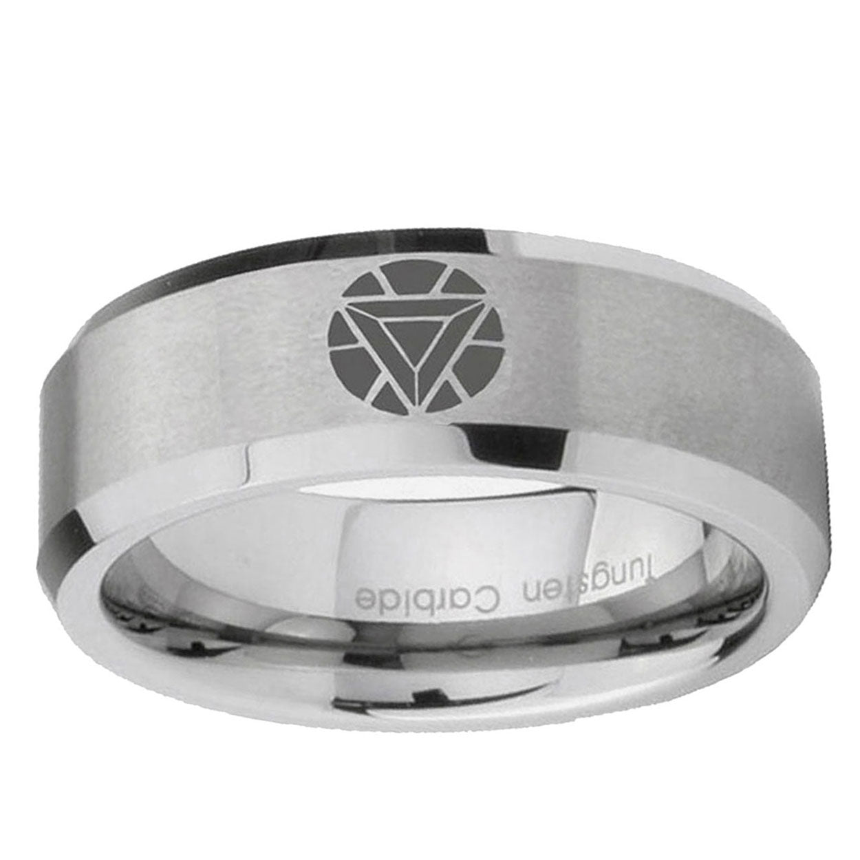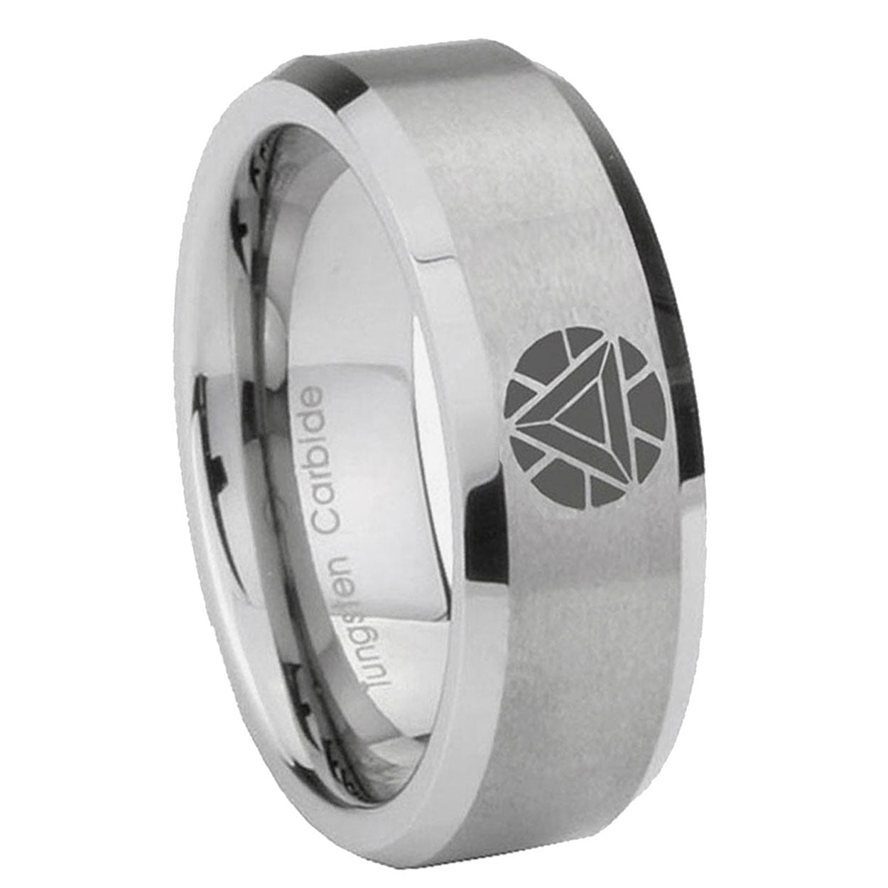 Introducing 6, 8mm Iron Man Art Reactor Beveled Edge Brushed Grey Mens Engraved Rings . Offer in both 6mm and 8mm band width brushed grey finished from size 5 to 14