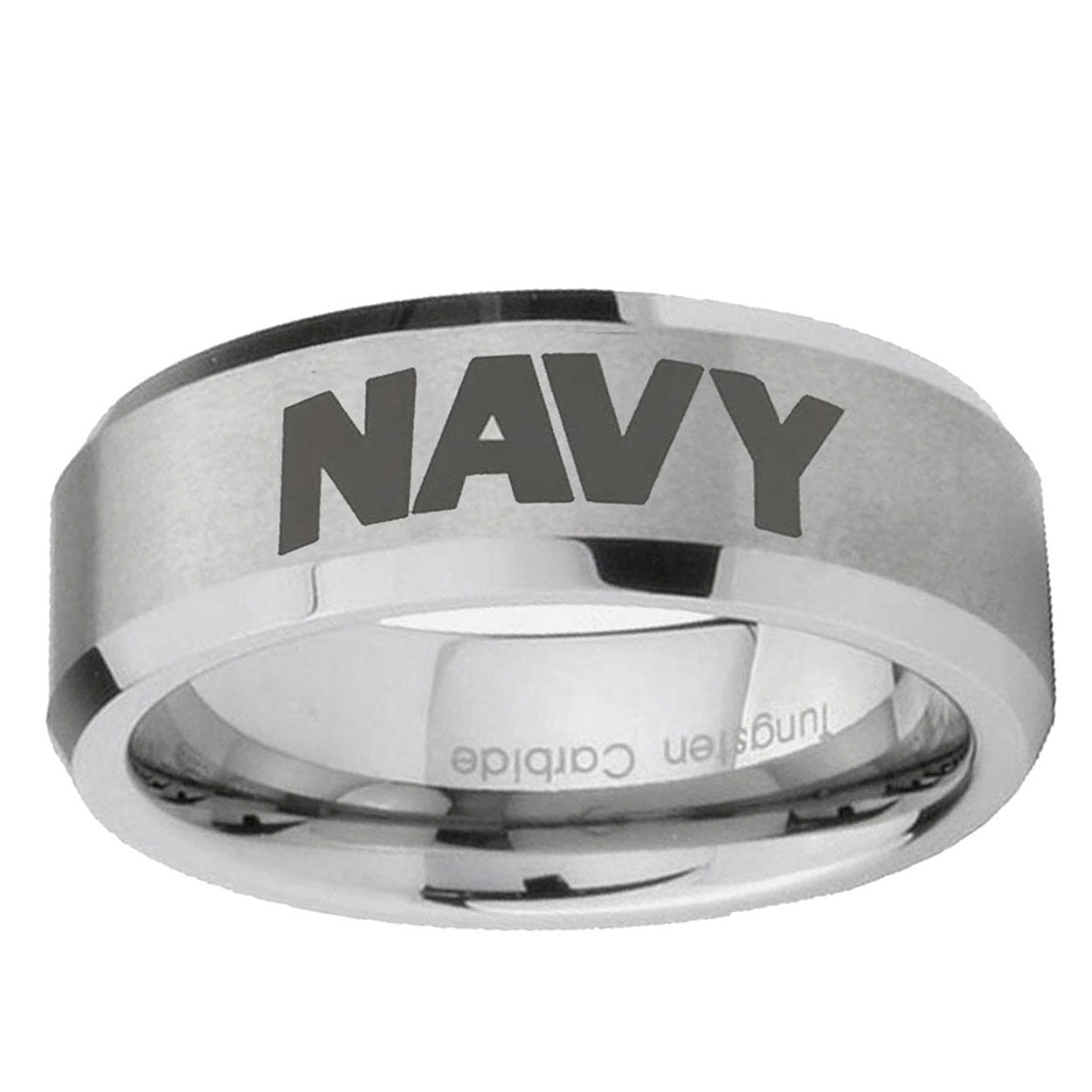 Introducing 6, 8mm Navy Beveled Edge Brushed Grey Tungsten Wedding Band Ring . Offer in both 6mm and 8mm band width brushed grey finished from size 5 to 14