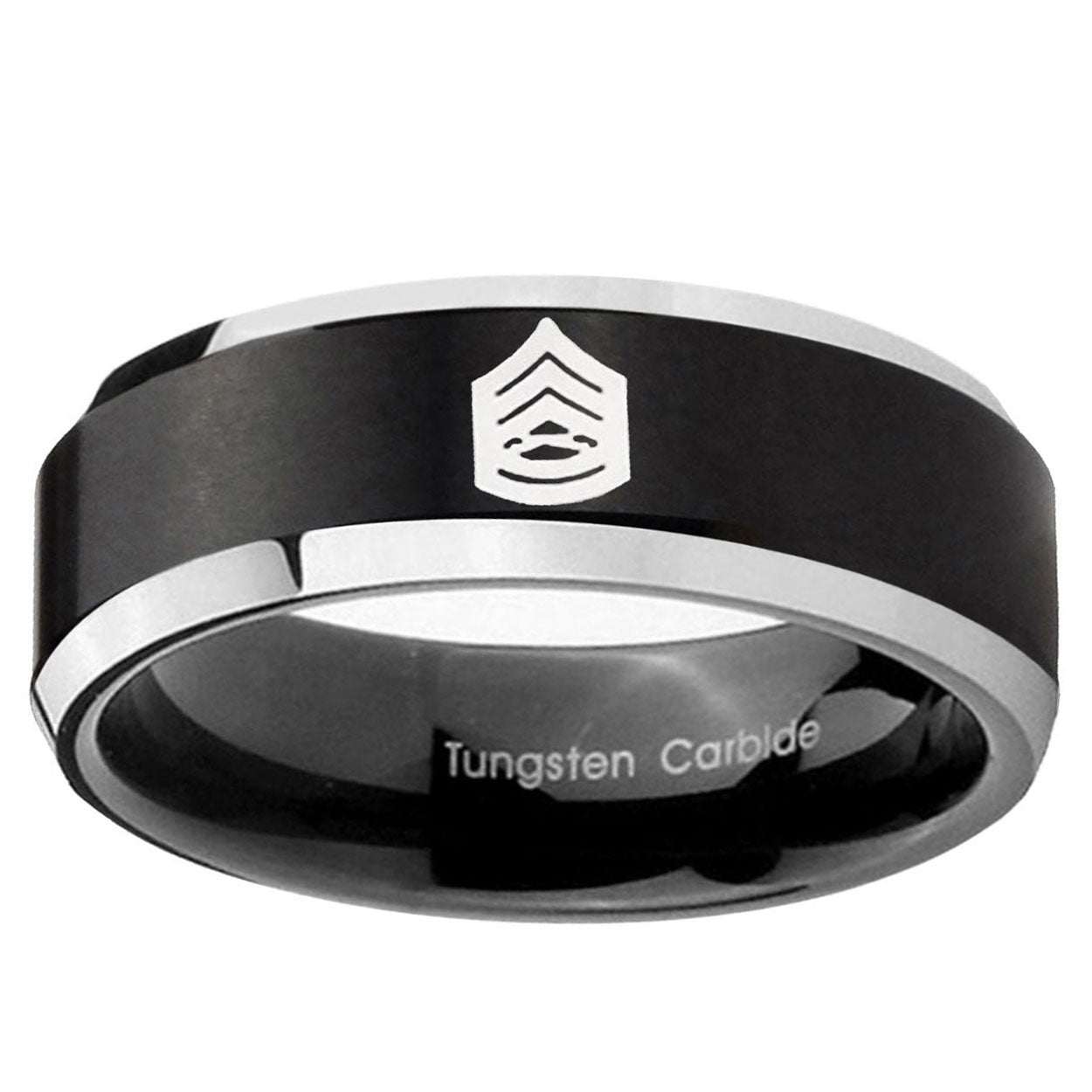 Intruding 5, 8mm Army Sergeant Major Beveled Brush Black 2 Tone Tungsten Wedding Band Ring . Offer in both 5mm and 8mm band width brushed black plated 2 tone finished from size 4 to 14