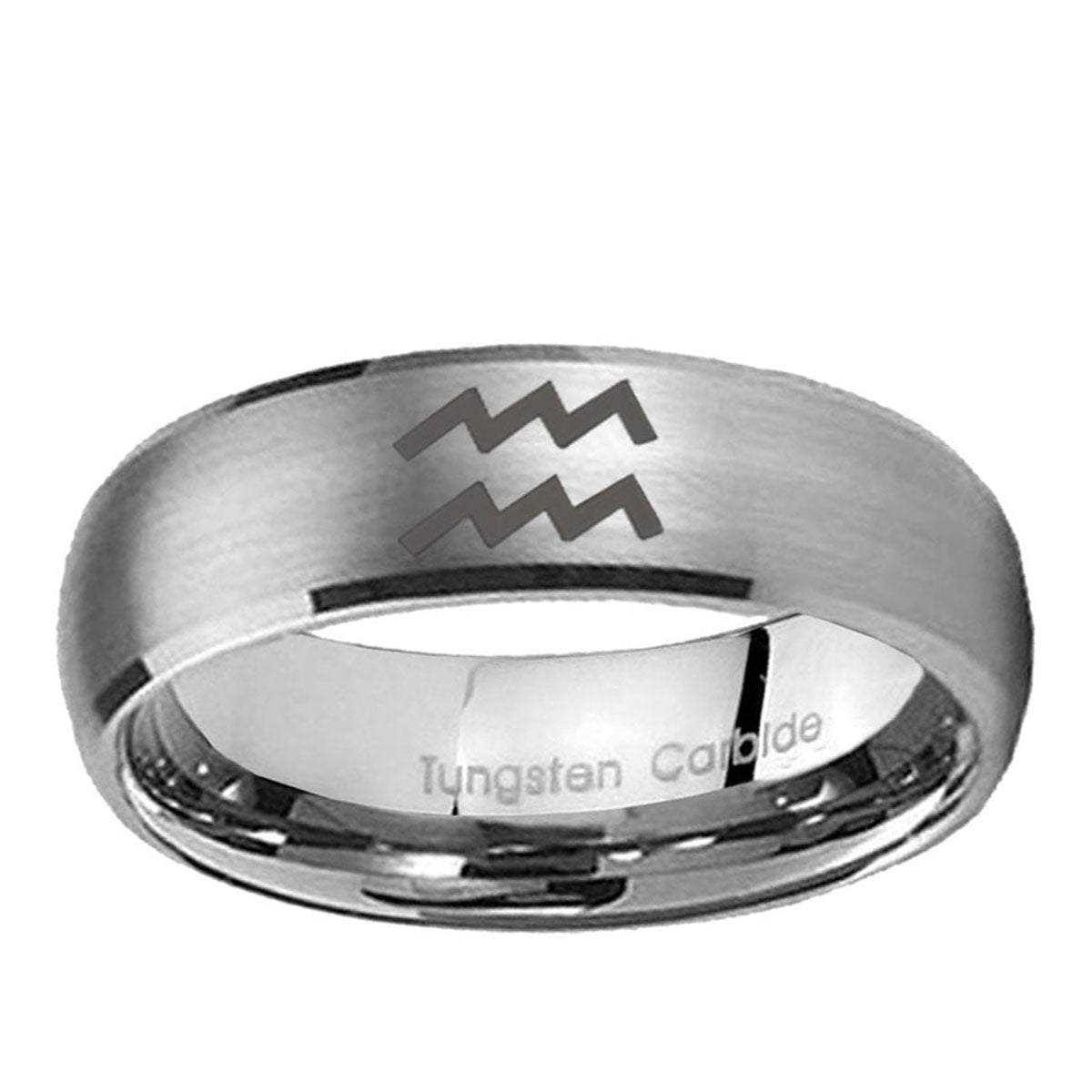 5, 8mm Aquarius Horoscope Dome Brushed Tungsten Carbide Wedding Band Ring
