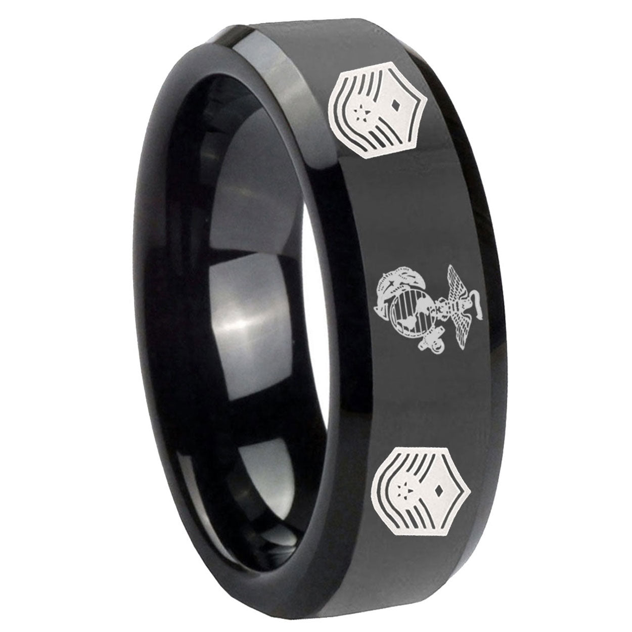 5, 8mm Marine Chief Master Sergeant Beveled Edges Black Tungsten Personalized Ring