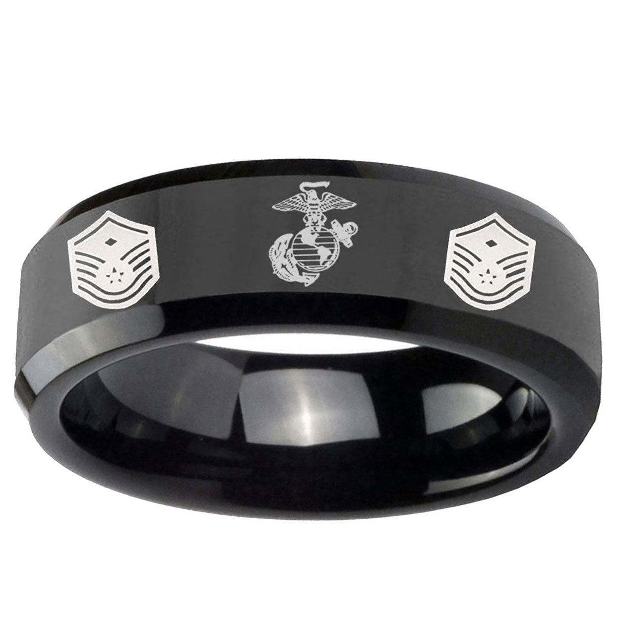 Intruding 5, 8mm Marine Chief Master Sergeant Beveled Edges Black Tungsten Personalized Ring . Offer in both 5mm and 8mm band width polished black plated finished from size 4 to 14