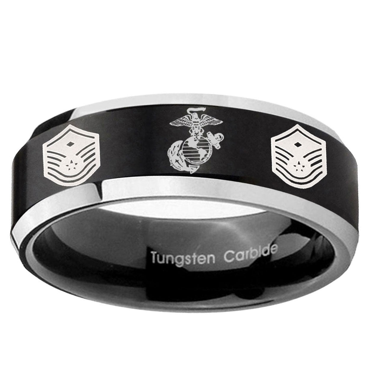 Intruding 5, 8mm Marine Chief Master Sergeant Beveled Brush Black 2 Tone Tungsten Wedding Band Ring . Offer in both 5mm and 8mm band width brushed black plated 2 tone finished from size 4 to 14