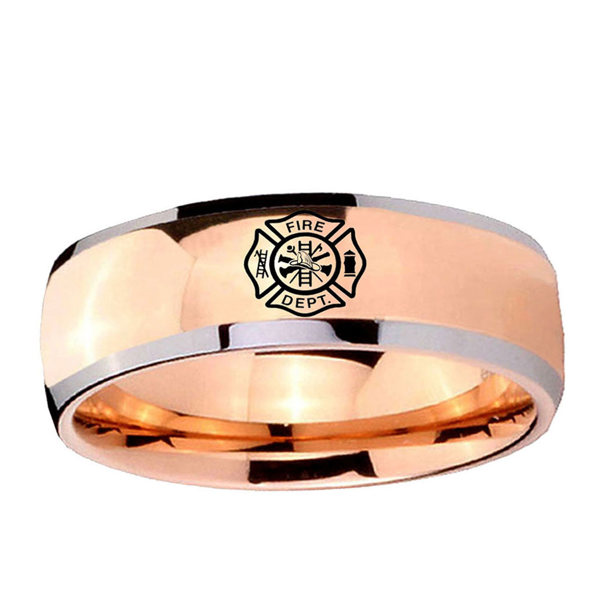 Intruding 5, 8mm Fire Department Dome Rose Gold Tungsten Carbide Men's Bands Ring . Offer in both 5mm and 8mm band width two tone rose gold plated finished from size 4 to 14