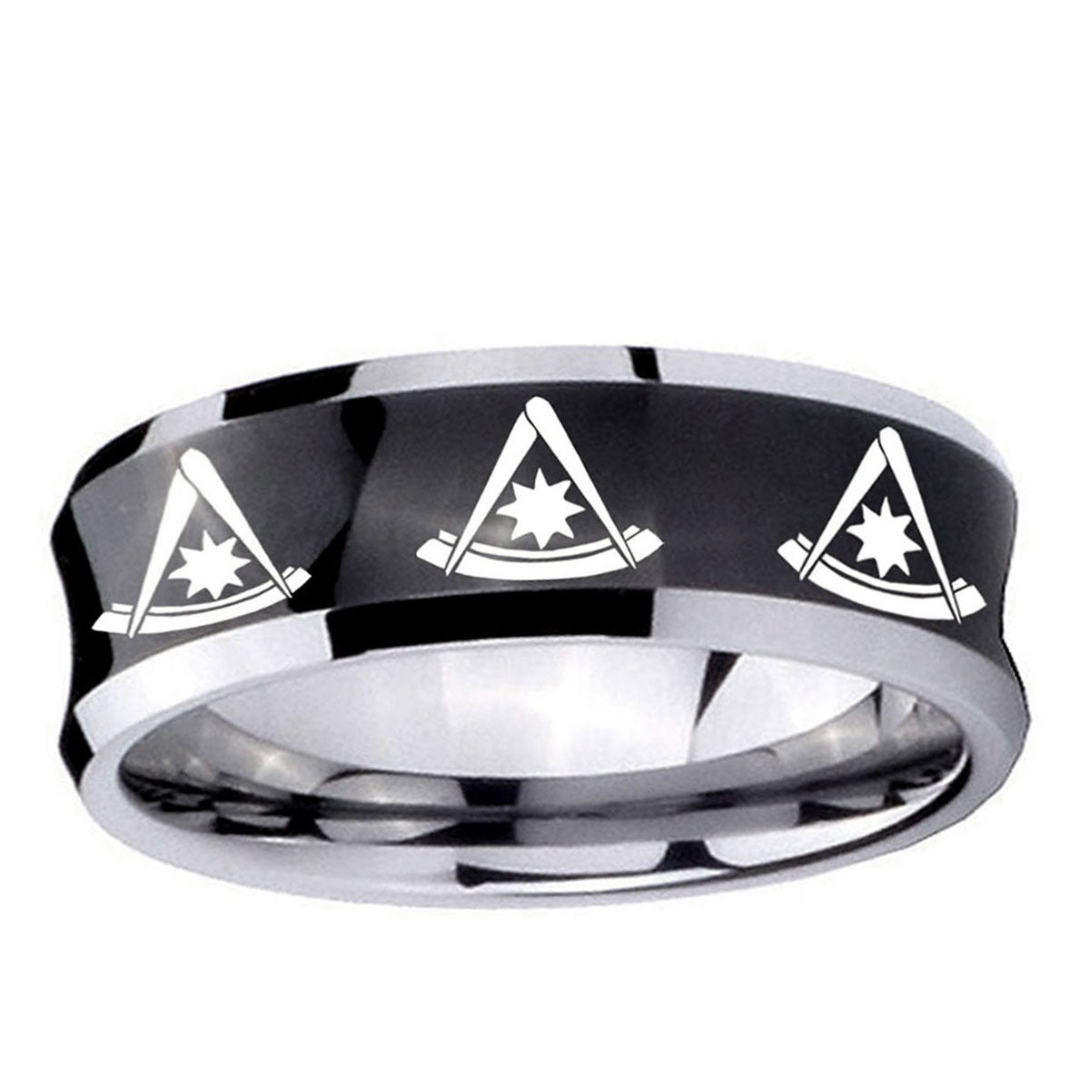 Intruding 5, 8mm Multiple Pester Master Masonic Concave Black Tungsten Carbide Rings for Men . Offer in both 5mm and 8mm band width black plated two tone finished from size 4 to 14