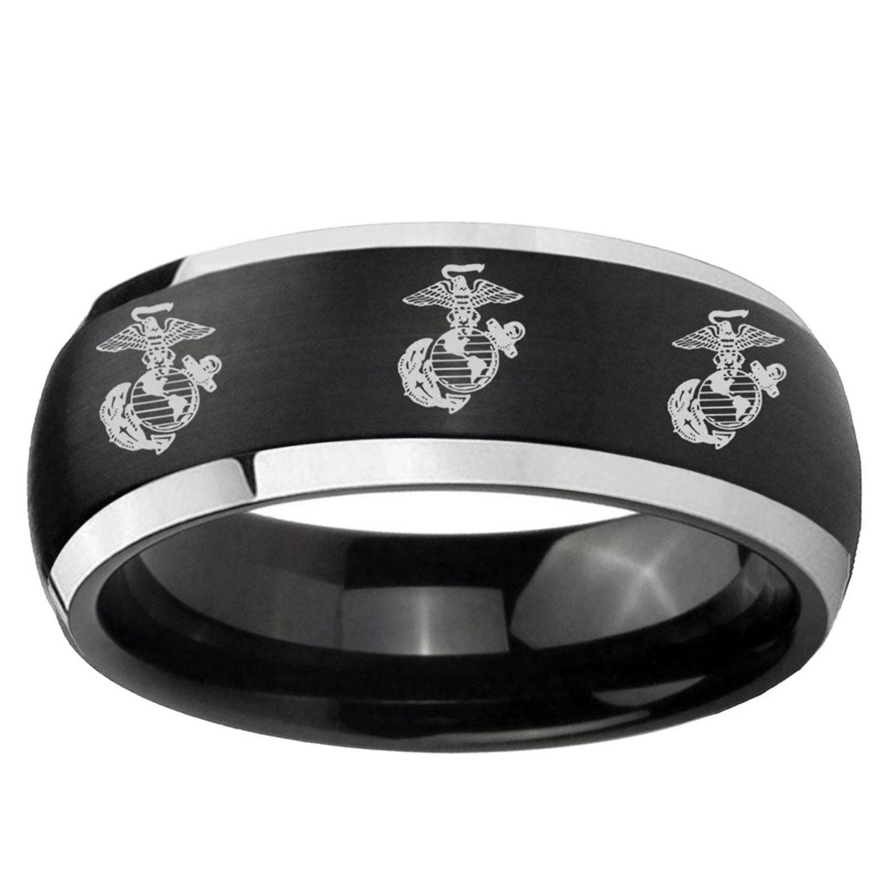 Intruding 5, 8mm Multiple Marine Dome Brushed Black 2 Tone Tungsten Carbide Bands Ring . Offer in both 5mm and 8mm band width brushed black plated finished from size 4 to 14
