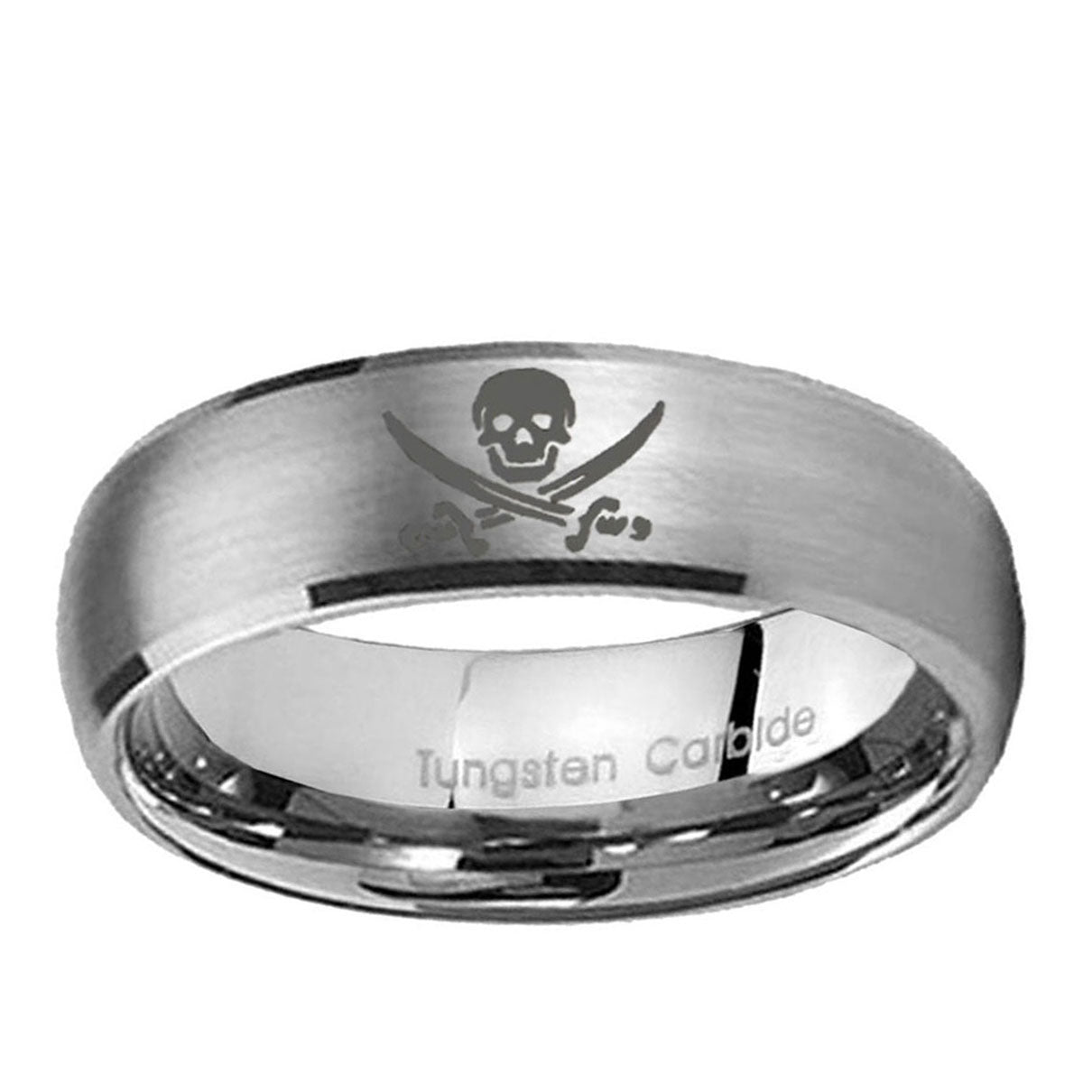 5, 8mm Skull Pirate Dome Brushed Tungsten Carbide Mens Engagement Band