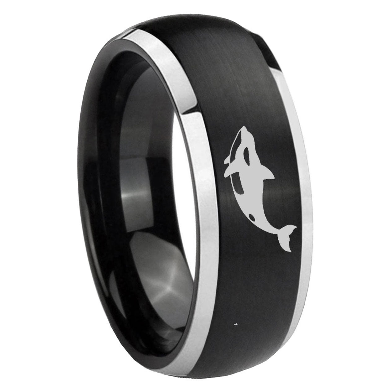 5, 8mm Keller Whale Dome Brushed Black 2 Tone Tungsten Personalized Ring