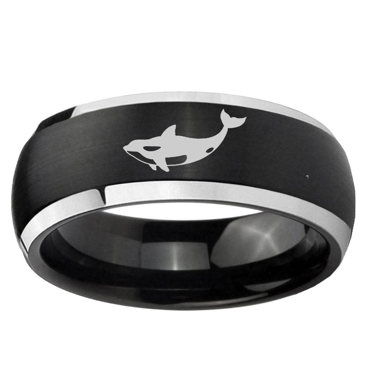 Intruding 5, 8mm Keller Whale Dome Brushed Black 2 Tone Tungsten Personalized Ring . Offer in both 5mm and 8mm band width brushed black plated finished from size 4 to 14