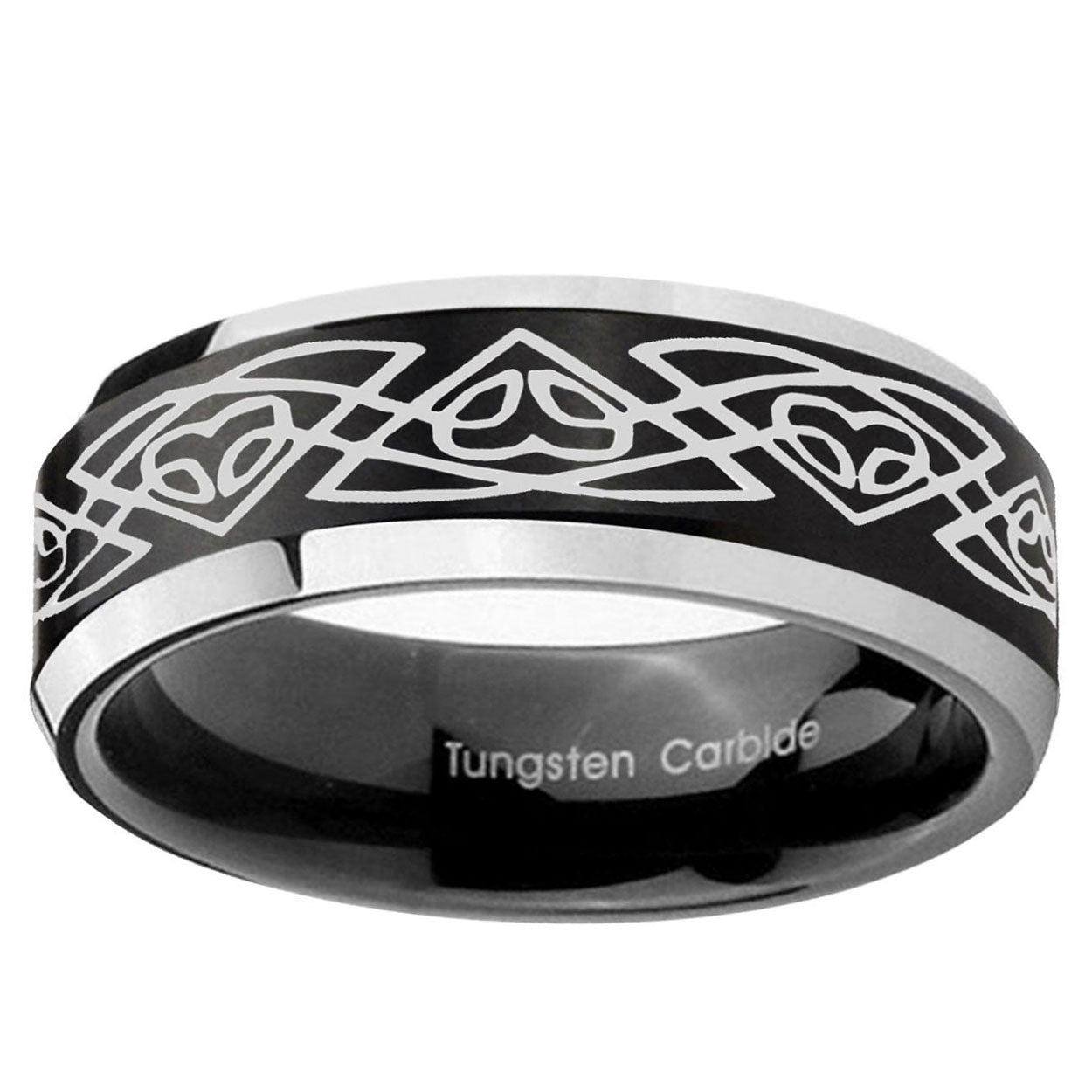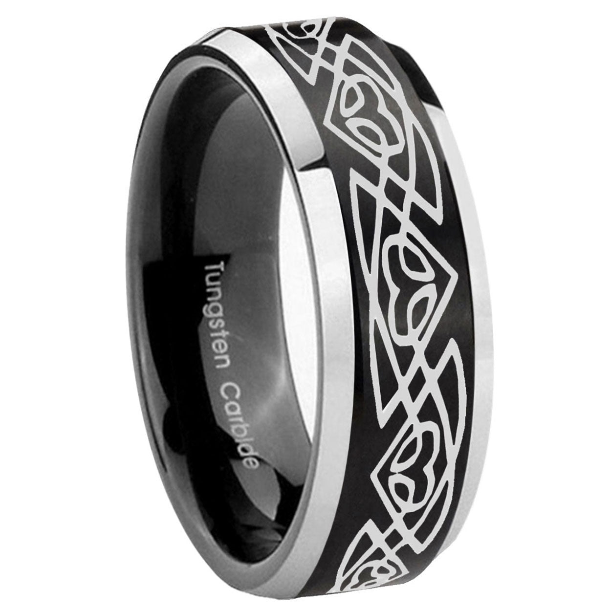 Intruding 5, 8mm Celtic Braided Beveled Edges Brush Black 2 Tone Tungsten Rings for Men . Offer in both 5mm and 8mm band width brushed black plated 2 tone finished from size 4 to 14