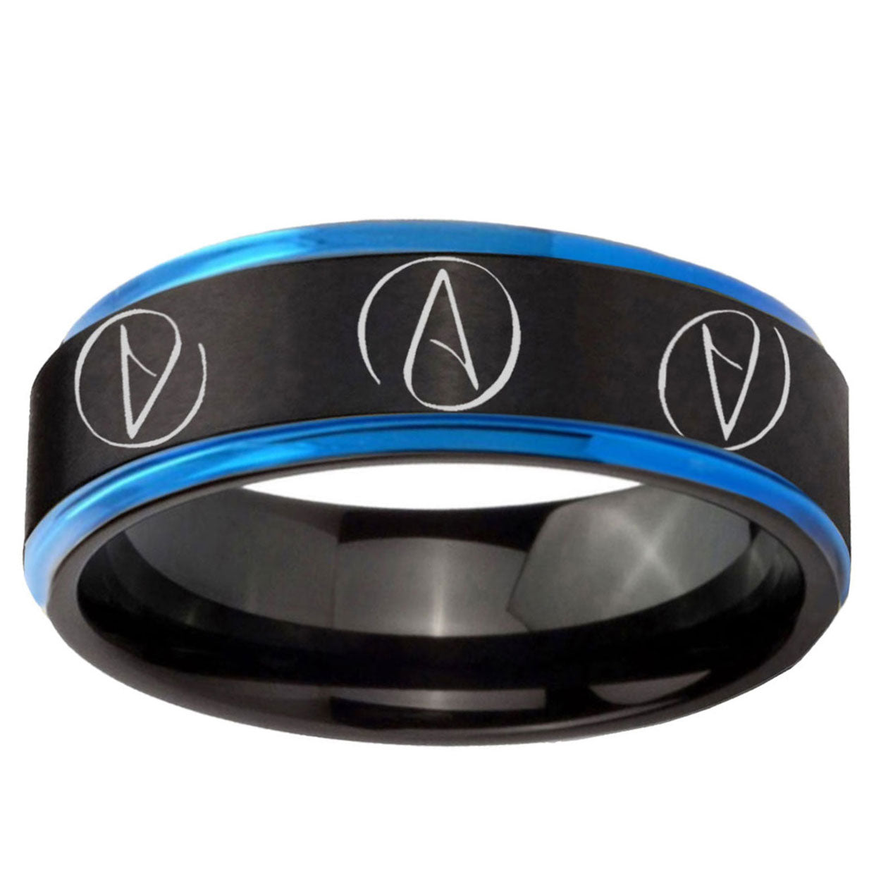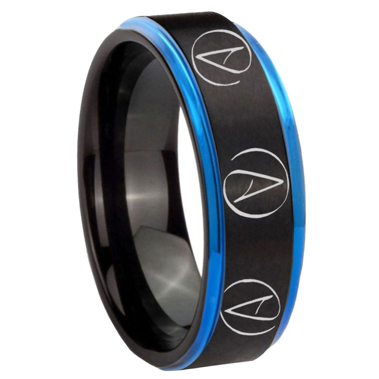 5, 8mm Atheist Design Blue Step Edge Black Tungsten Engagement Ring