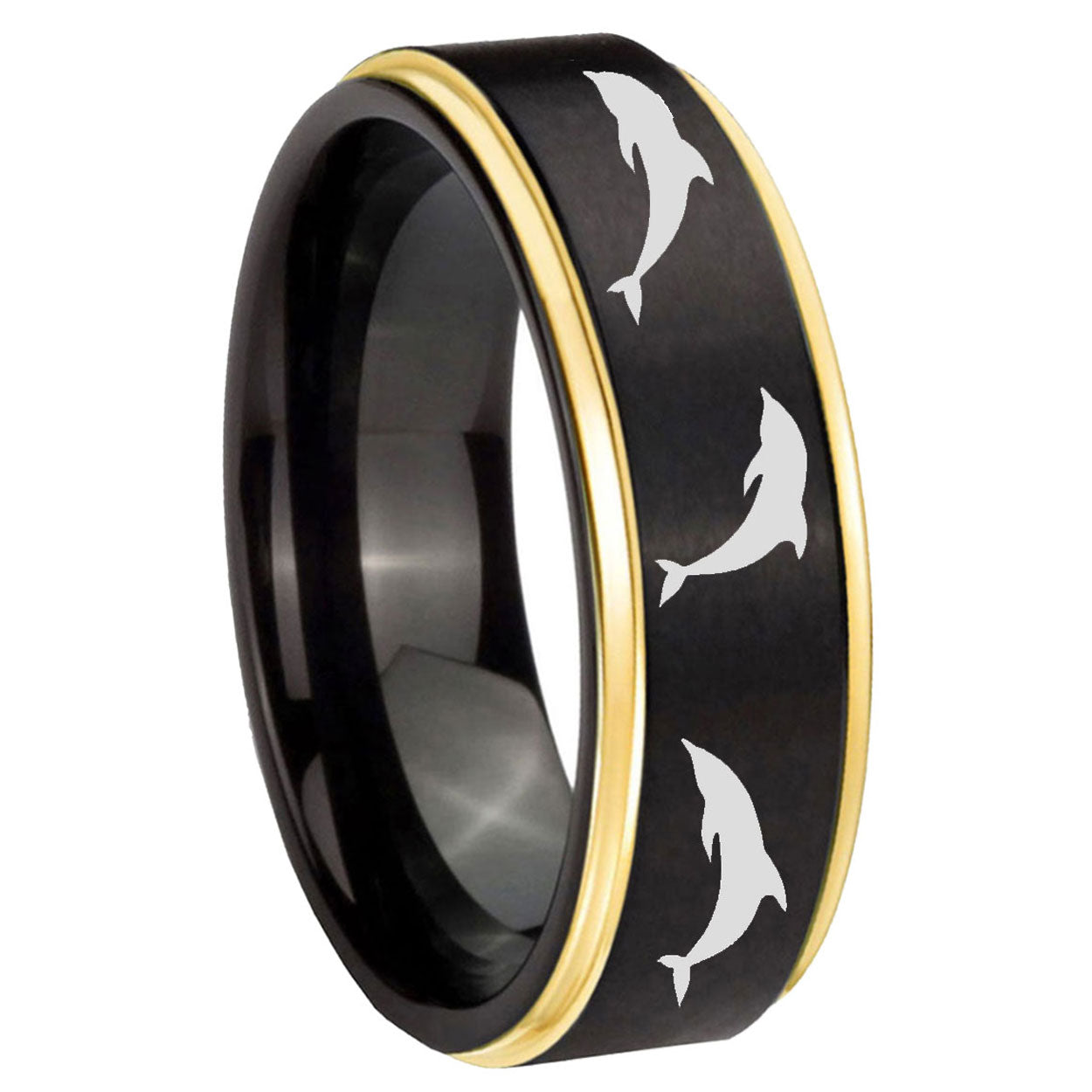6, 8mm Dolphins Gold Step Edge Black Tungsten Carbide Personalized Ring