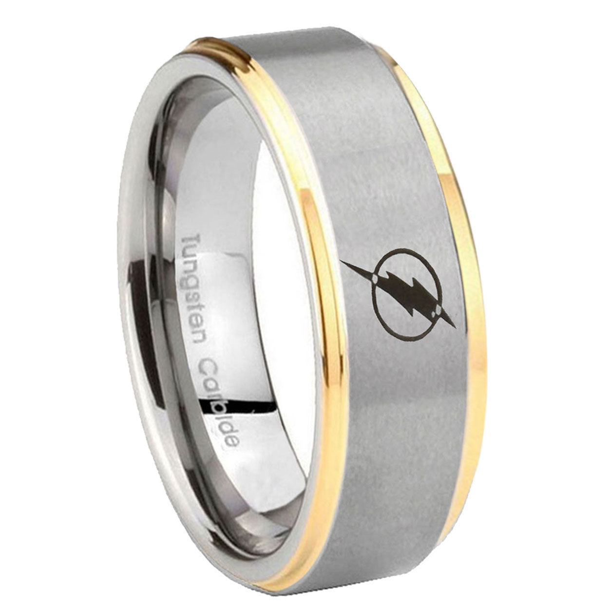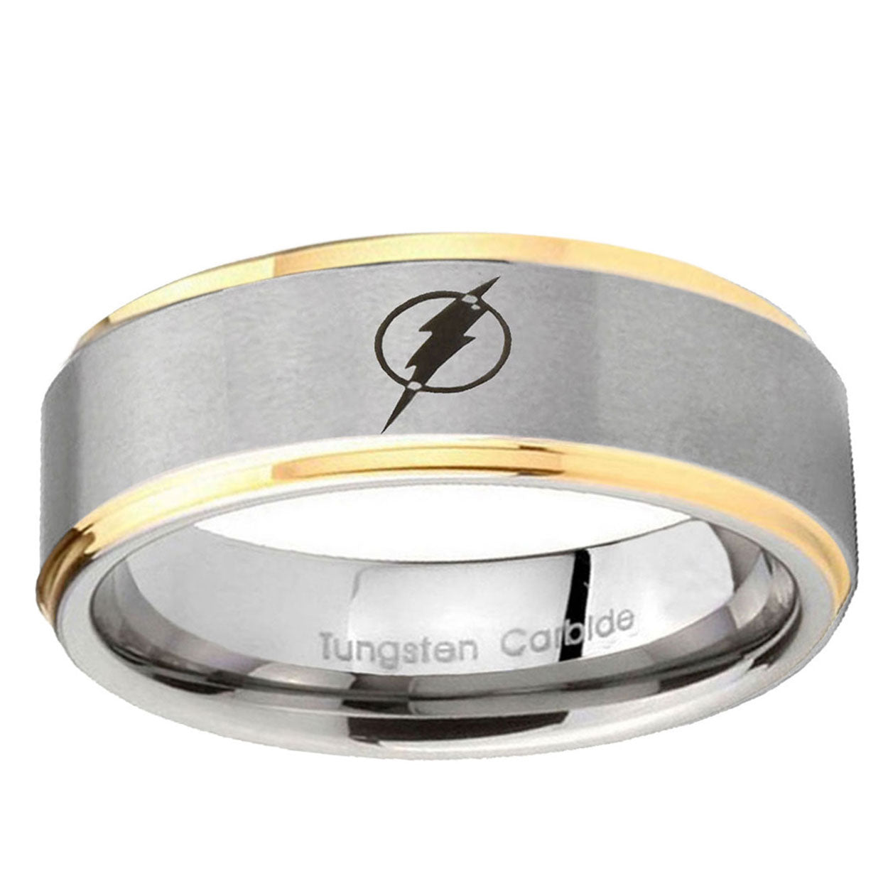5, 8mm Flash Step Edge Gold and Gray Custom Engraved Ring