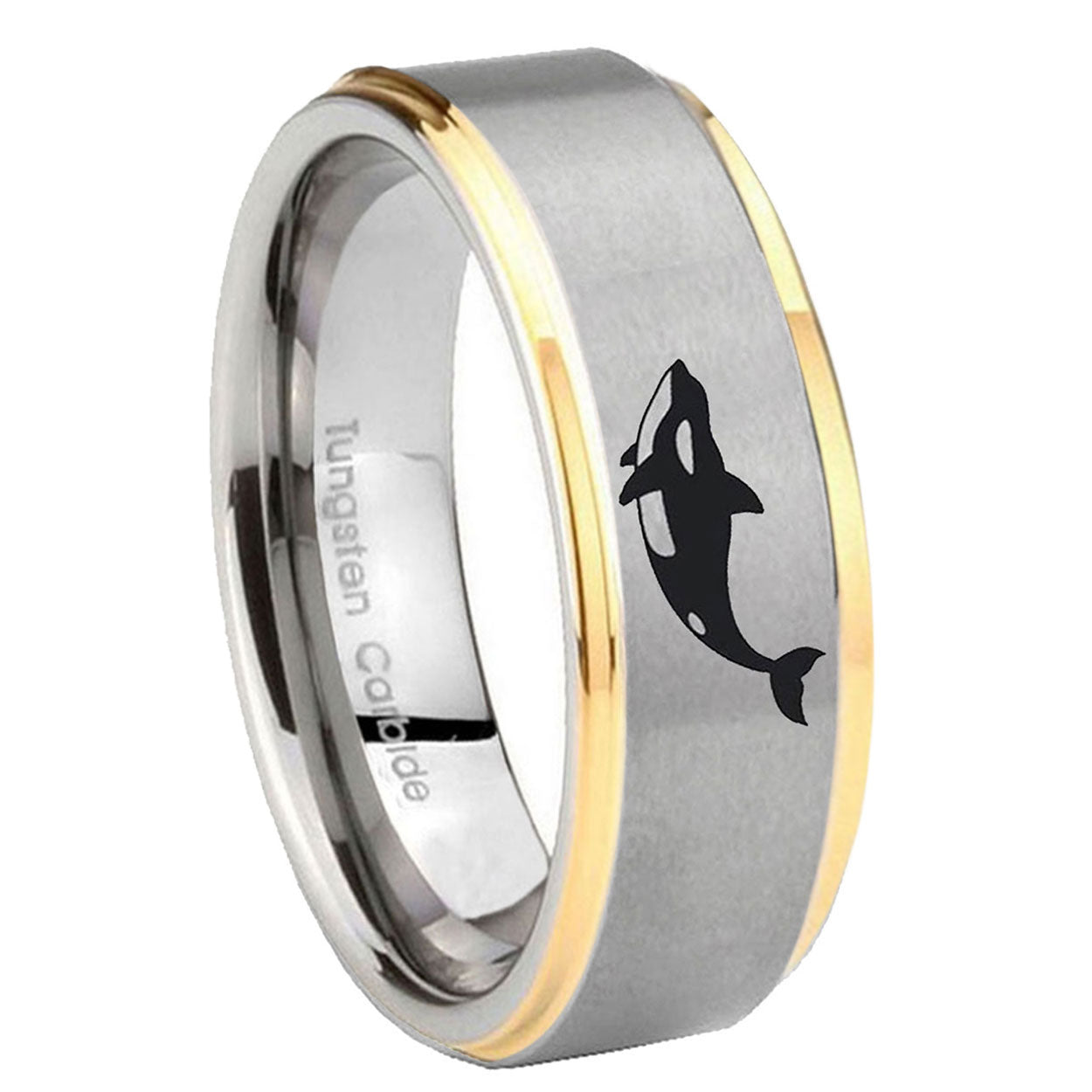Intruding 5, 8mm Keller Whale Step Edges Gold 2 Tone Tungsten Carbide Mens Ring . Offer in both 5mm and 8mm band width grey and gold 2 tone finished from size 4 to 14