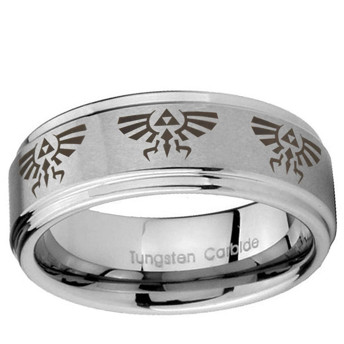 Intruding 5, 8mm Multiple Zelda Skyward Sword Step Edges Brushed Silver Tungsten Wedding Band Men's . Offer in both 5mm and 8mm band width brushed grey finished from size 4 to 14
