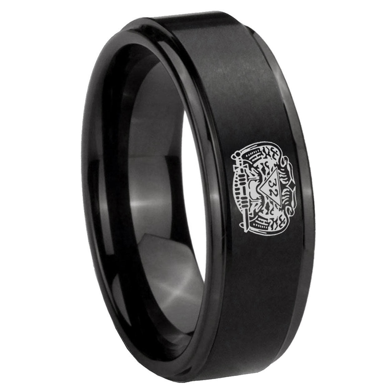 5, 8mm Masonic 32 Degree Freemason Step Edges Brush Black Tungsten Carbide Custom Mens Ring