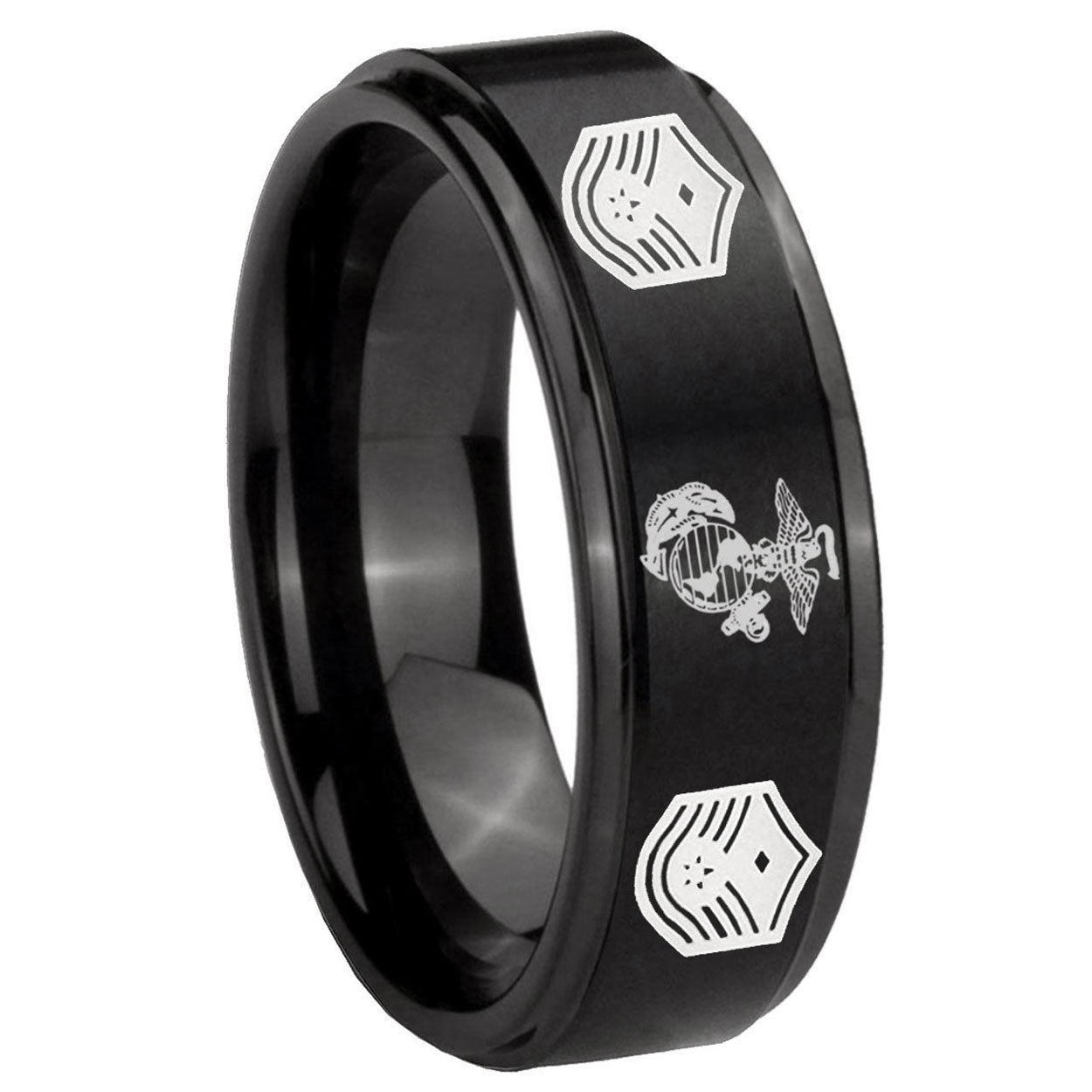 Intruding 5, 8mm Marine Chief Master Sergeant Step Edges Brush Black Tungsten Men's Bands Ring . Offer in both 5mm and 8mm band width brush black plated finished from size 4 to 14