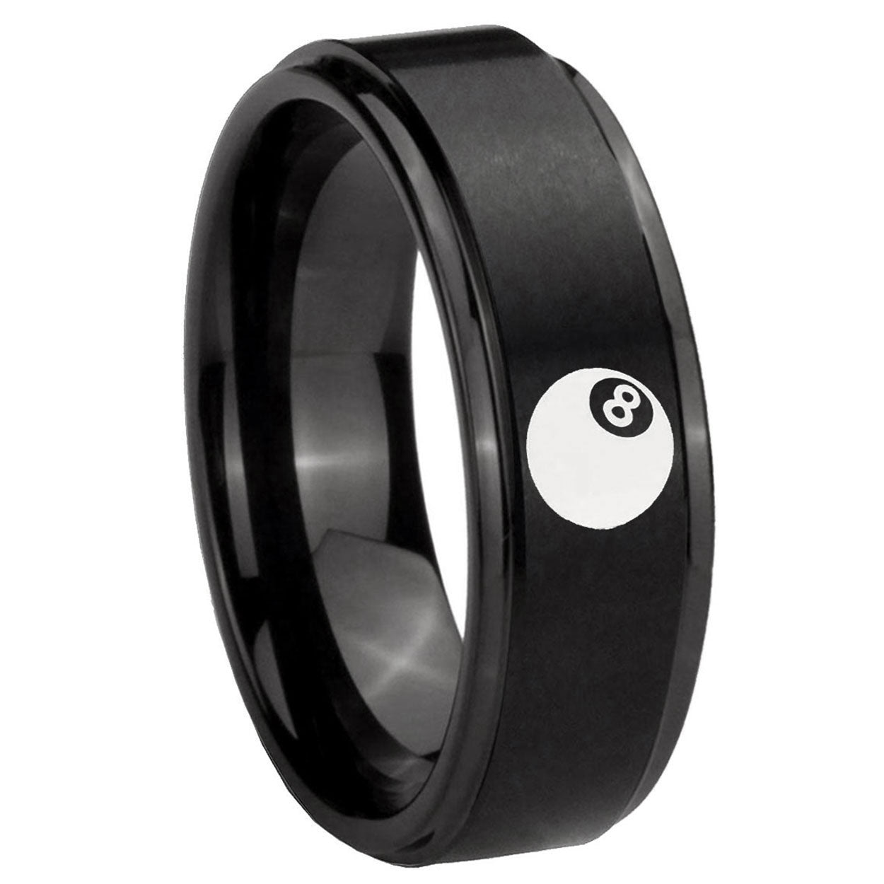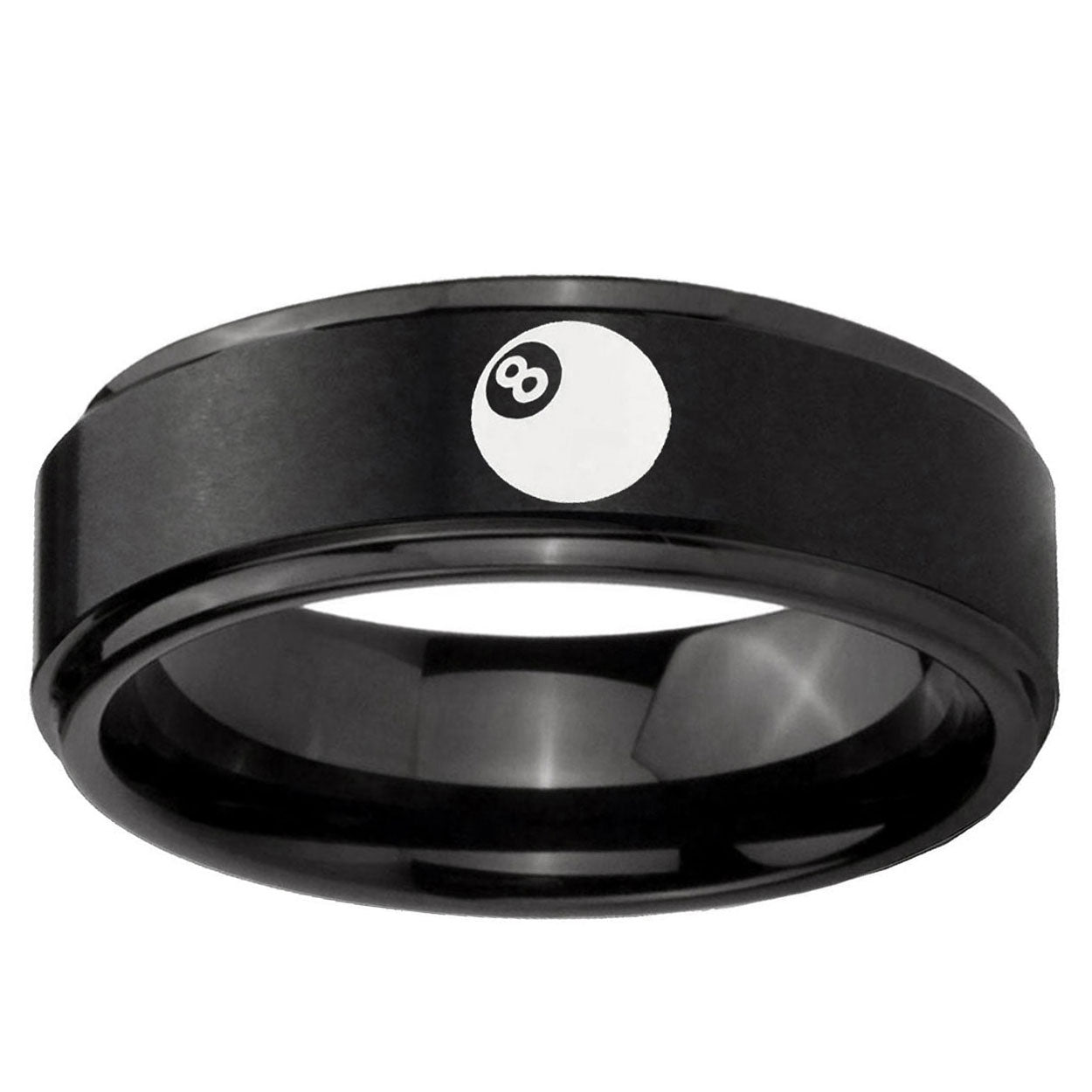 Intruding 5, 8mm 8 Ball Step Edges Brush Black Tungsten Carbide Wedding Engraving Ring . Offer in both 5mm and 8mm band width brush black plated finished from size 4 to 14