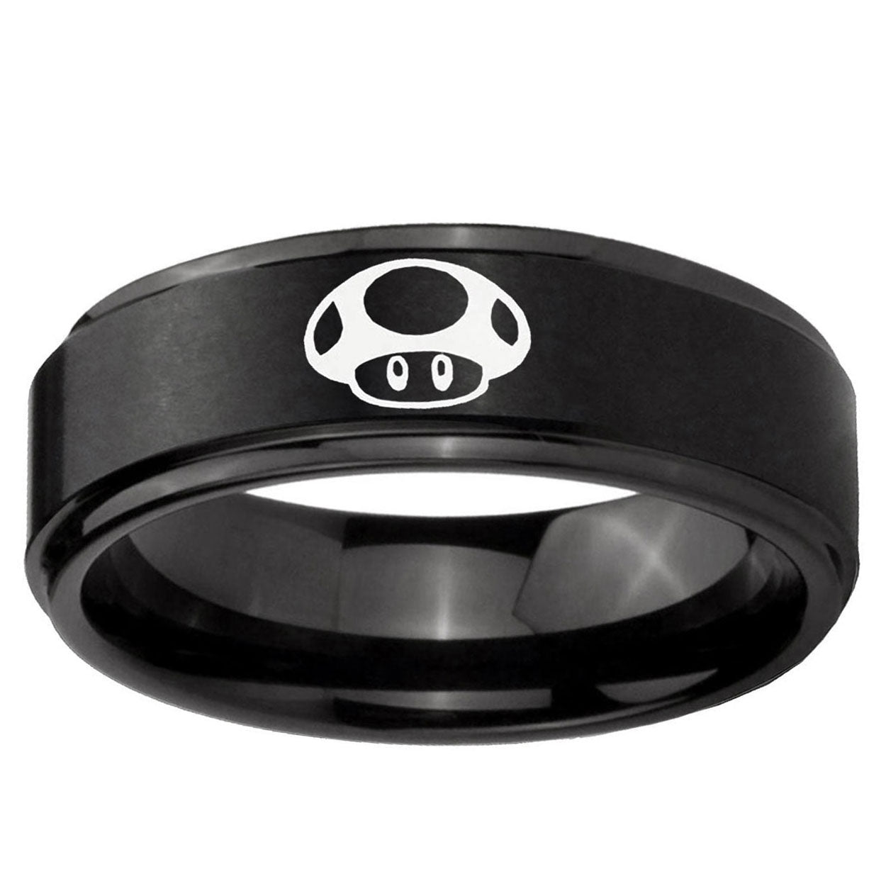 5, 8mm Mario Mushroom Step Edges Brush Black Tungsten Carbide Men's Bands Ring