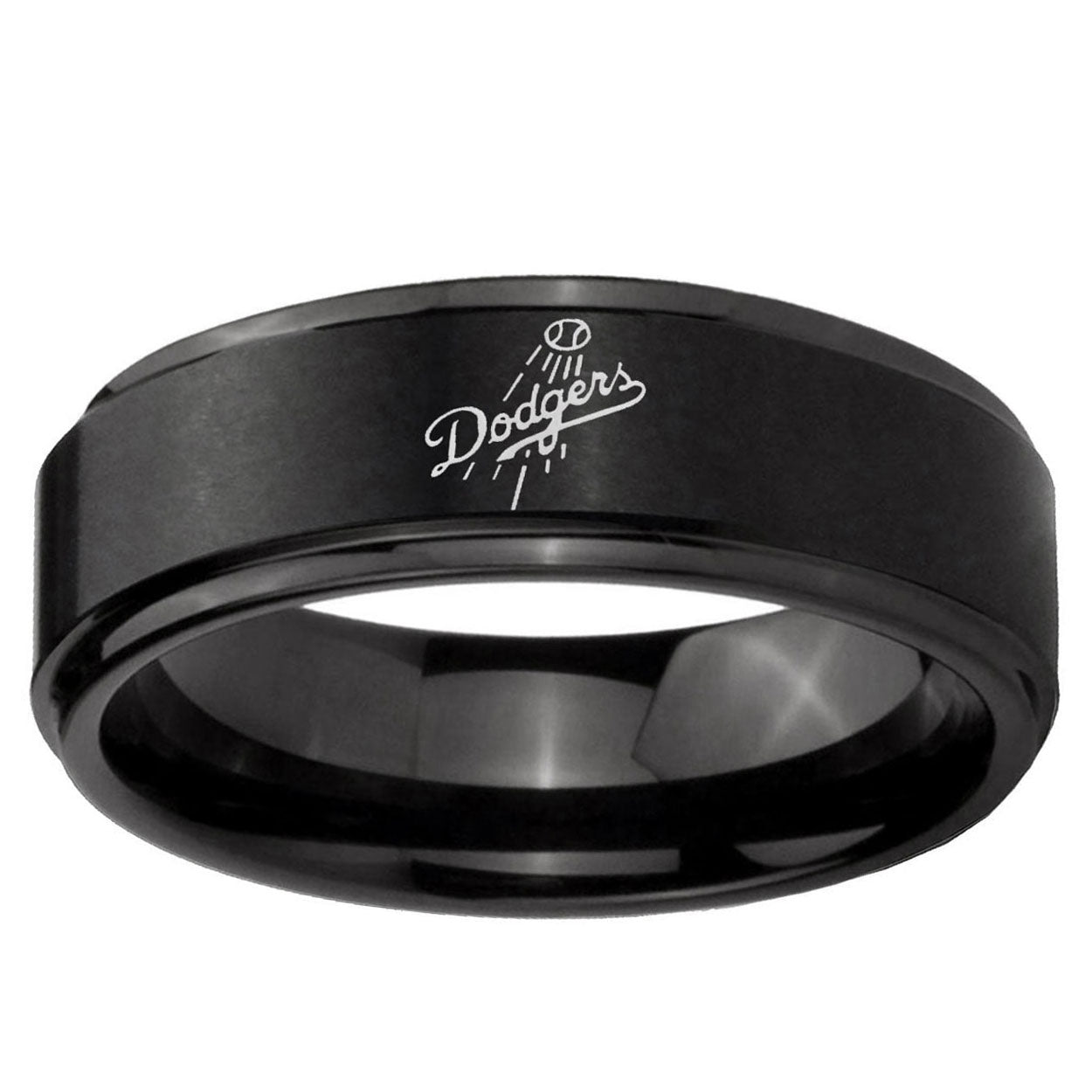 Intruding 5, 8mm LA Dogers MLB Baseball Step Edges Brush Black Tungsten Mens Engagement Band . Offer in both 5mm and 8mm band width brush black plated finished from size 4 to 14