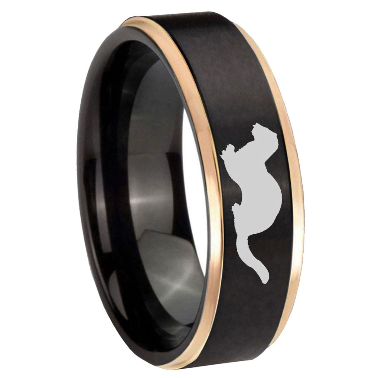 6, 8mm Otter Rose Gold Step Edge Black Tungsten Carbide Men's Wedding Ring