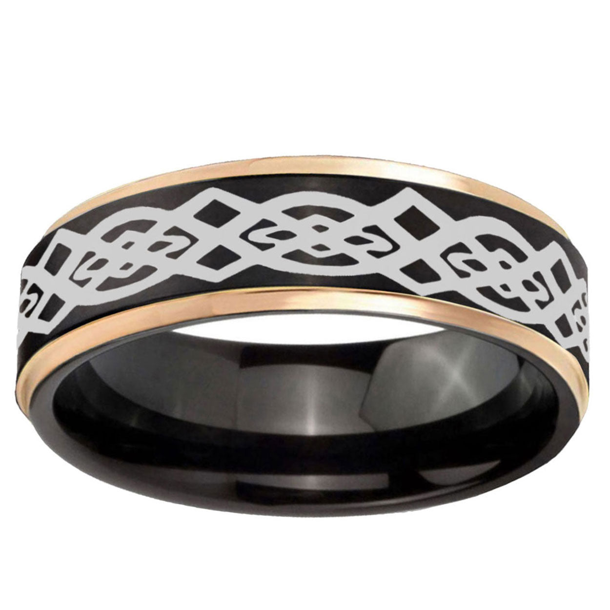 Intruding 6, 8mm Celtic Knot Rose Gold Step Edge Black Tungsten Carbide Wedding Band Mens . Offer in both 6mm and 8mm band width black plated finished from size 6 to 14