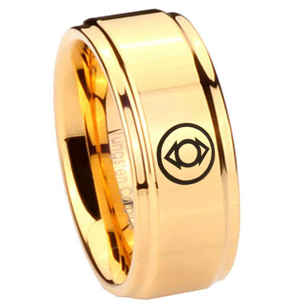 Intruding 5, 8mm Indigo Lanterns Step Edge Gold Engraved Tungsten Rings . Offer in both 5mm and 8mm band width 18k gold plated finished from size 4 to 14