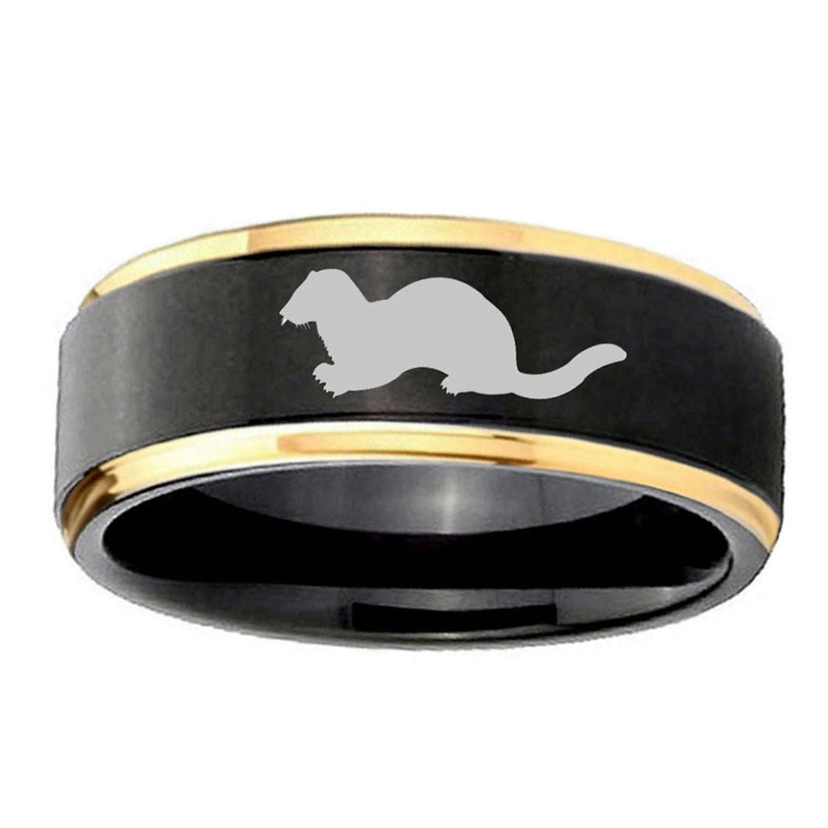 6, 8mm Otter Step Edge Black Gold Mens Wedding Ring Tungsten