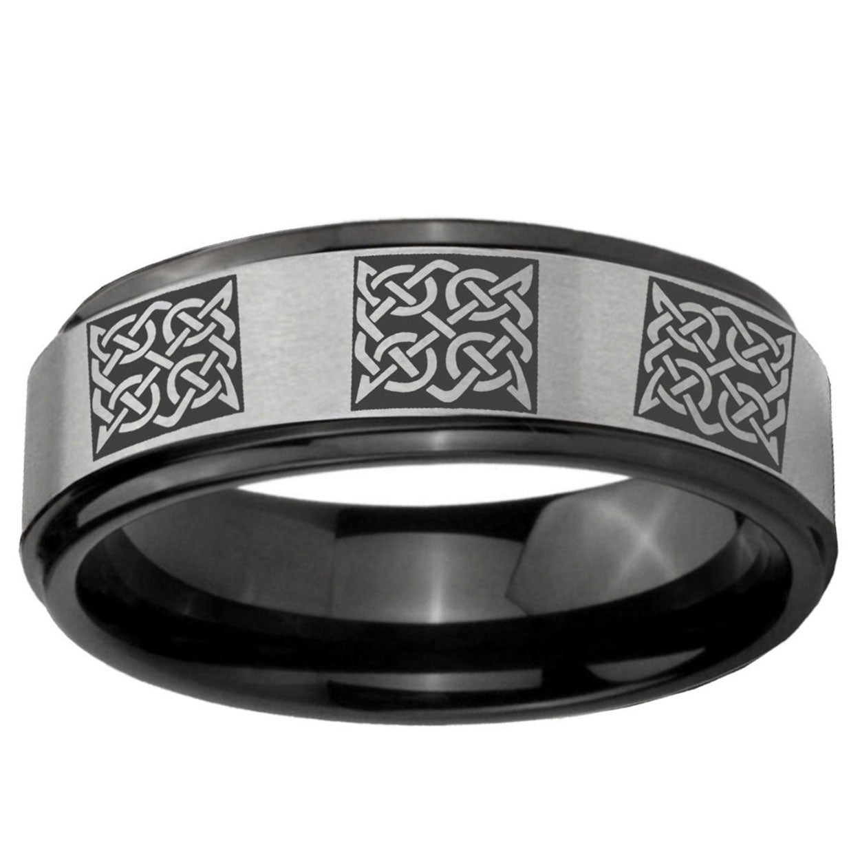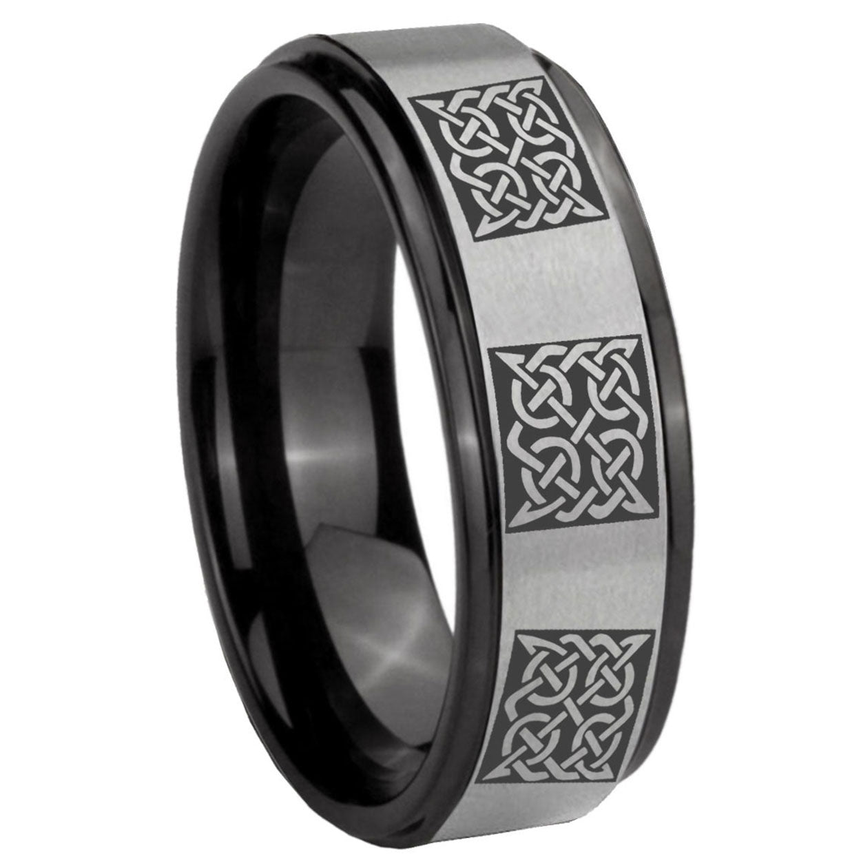 Intruding 6, 8mm Multiple Celtic Black Step Edge Gray Tungsten Carbide Promise Ring . Offer in both 6mm and 8mm band width black plated finished from size 7 to 14