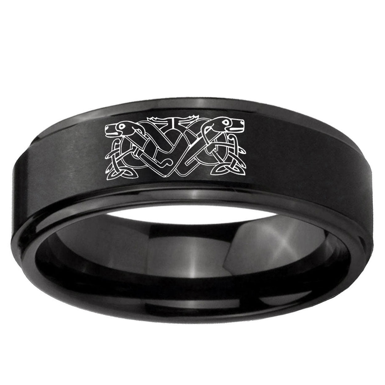 Intruding 5, 8mm Celtic Dog Step Edges Brush Black Tungsten Carbide Bands Ring . Offer in both 5mm and 8mm band width brush black plated finished from size 4 to 14