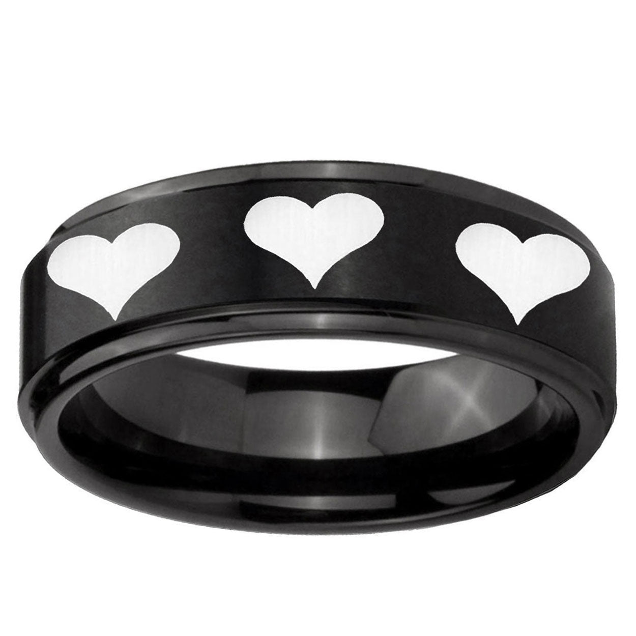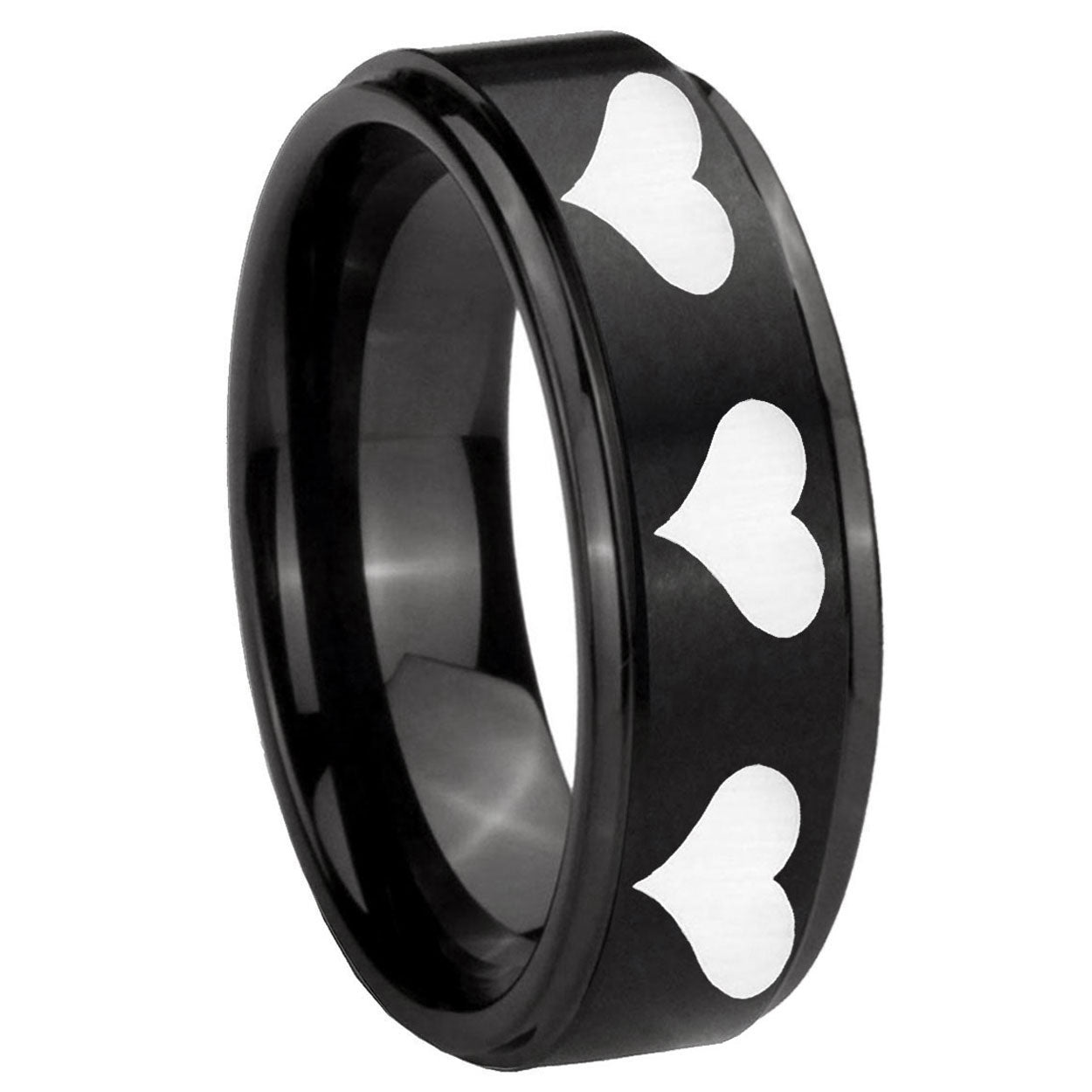 10mm Multiple Heart Step Edges Brush Black Tungsten Carbide Mens Promise Ring