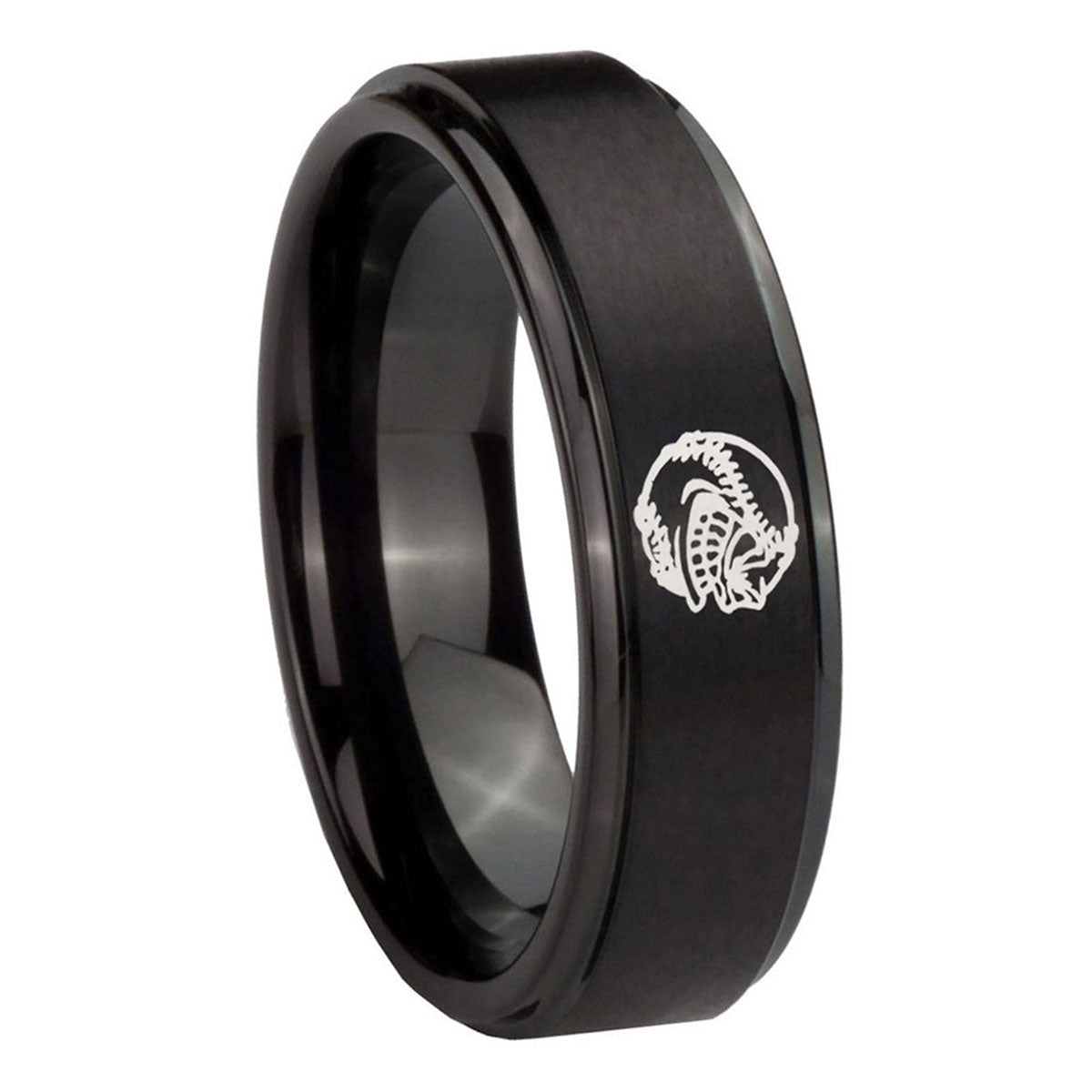 5, 8mm Angry Baseball Step Edges Brush Black Tungsten Wedding Engagement Ring