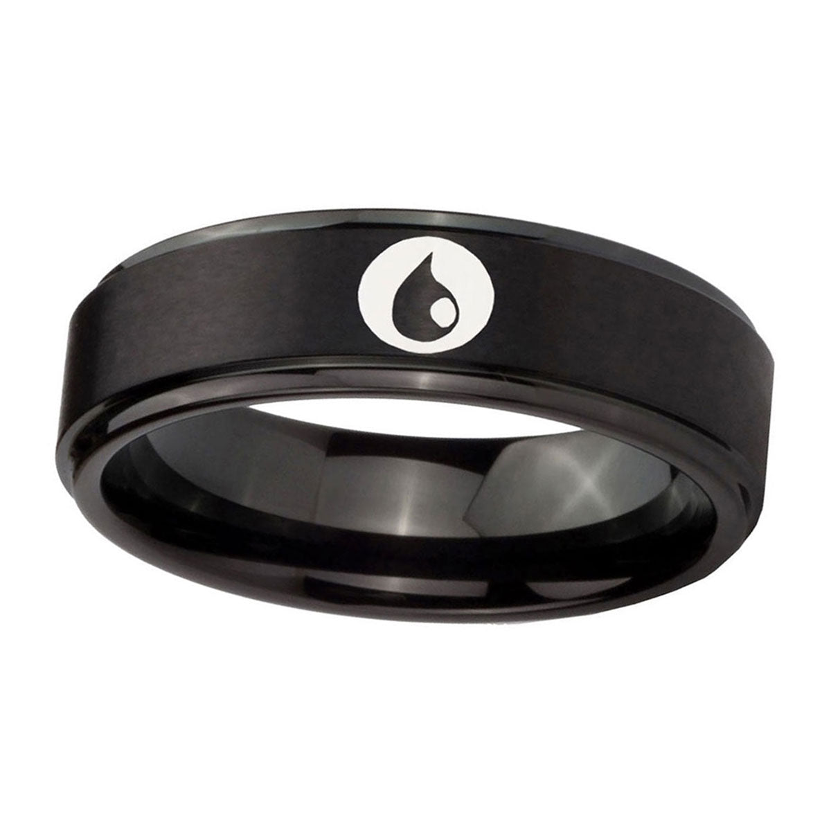 Introuding 5, 8mm Magic Gathering Step Edges Brush Black Tungsten Carbide Men's Band Ring . Offer in both 5mm and 8mm band width brush black plated fnished from size 4 to 14