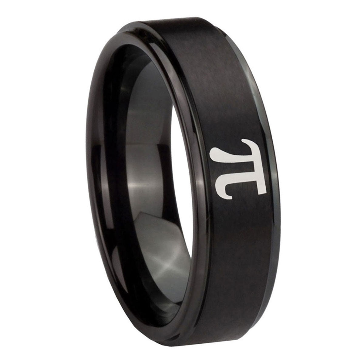 Introuding 5, 8mm Math Pi Step Edges Brush Black Tungsten Carbide Men's Engagement Band . Offer in both 5mm and 8mm band width brush black plated fnished from size 4 to 14